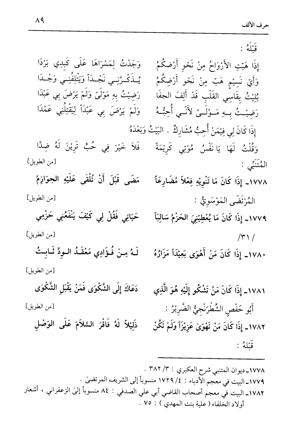 1779 - البيت في معجم الأدباء: 4/ 1729 منسوبًا إلى الشريف المرتضى.
