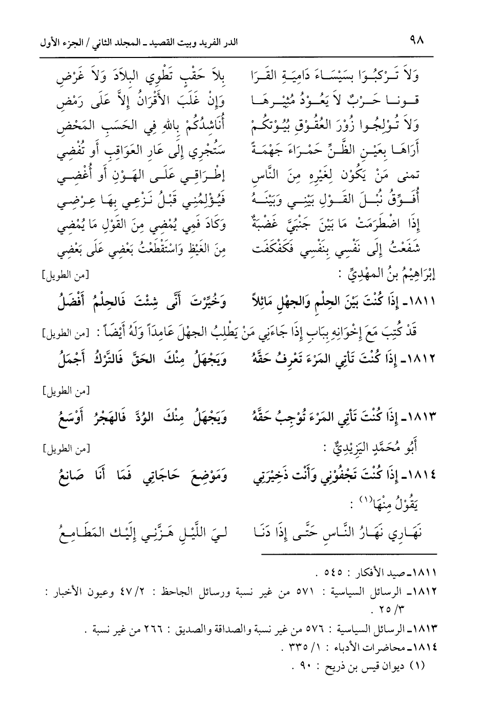 1812 - الرسائل السياسية: 571 من غير نسبة ورسائل الجاحظ: 2/ 47 وعيون الأخبار: 3/ 25.