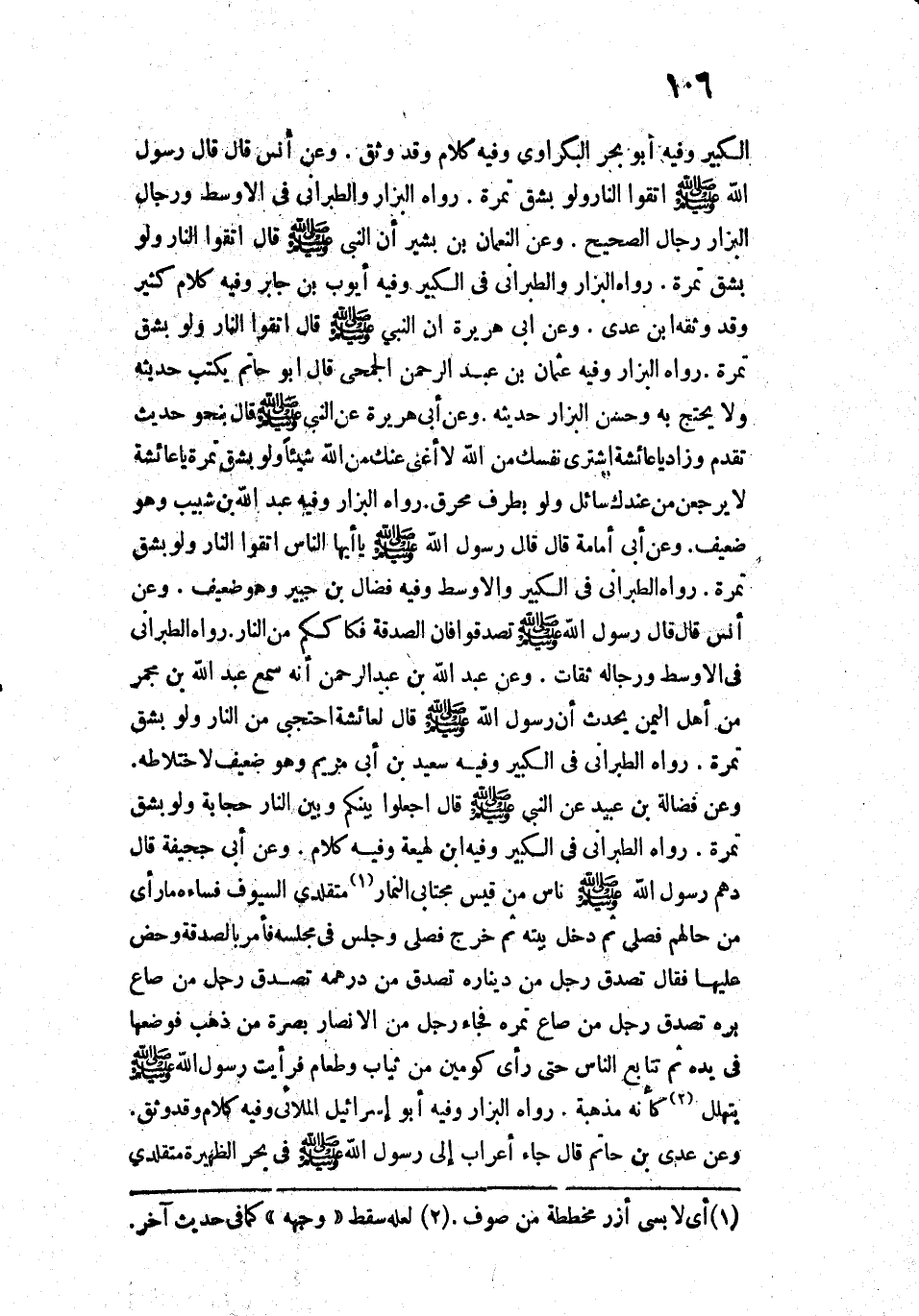 4586 - وَعَنِ النُّعْمَانِ بْنِ بَشِيرٍ أَنَّ النَّبِيَّ صَلَّى اللَّهُ عَلَيْهِ وَسَلَّمَ قَالَ: «اتَّقُوا النَّارَ وَلَوْ بِشِقِّ تَمْرَةٍ».