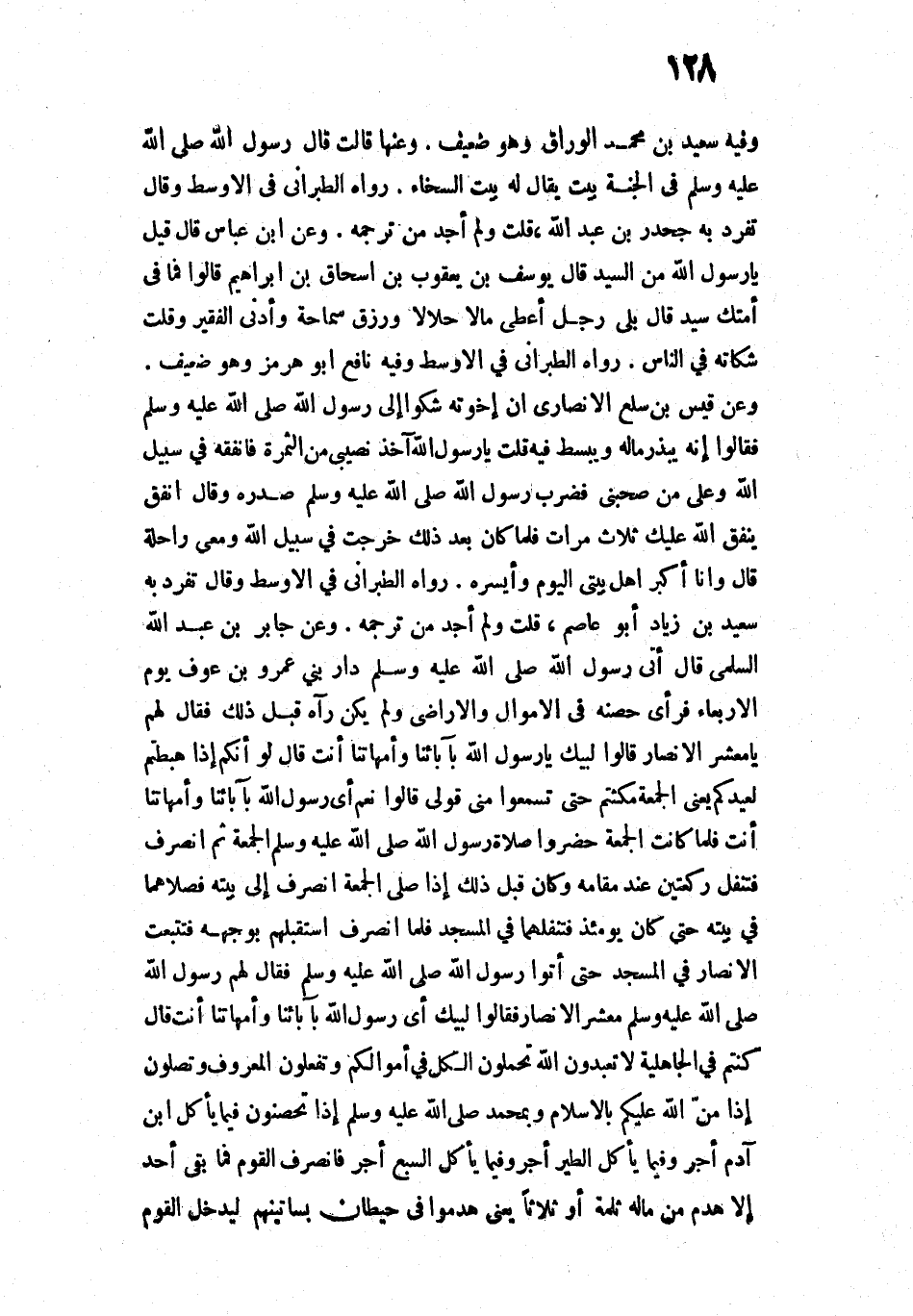 وَفِيهِ سَعِيدُ بْنُ مُحَمَّدٍ الْوَرَّاقُ، وَهُوَ ضَعِيفٌ.