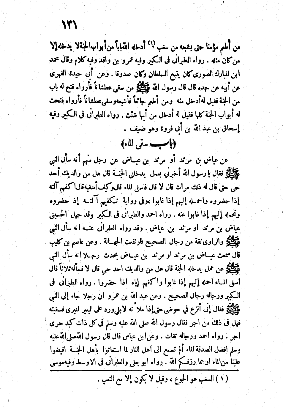 «مَنْ أَطْعَمَ مُؤْمِنًا حَتَّى يُشْبِعَهُ مِنْ سَغَبٍ أَدْخَلَهُ اللَّهُ بَابًا مِنْ أَبْوَابِ الْجَنَّةِ لَا يَدْخُلُهُ إِلَّا مَنْ كَانَ مِثْلَهُ».