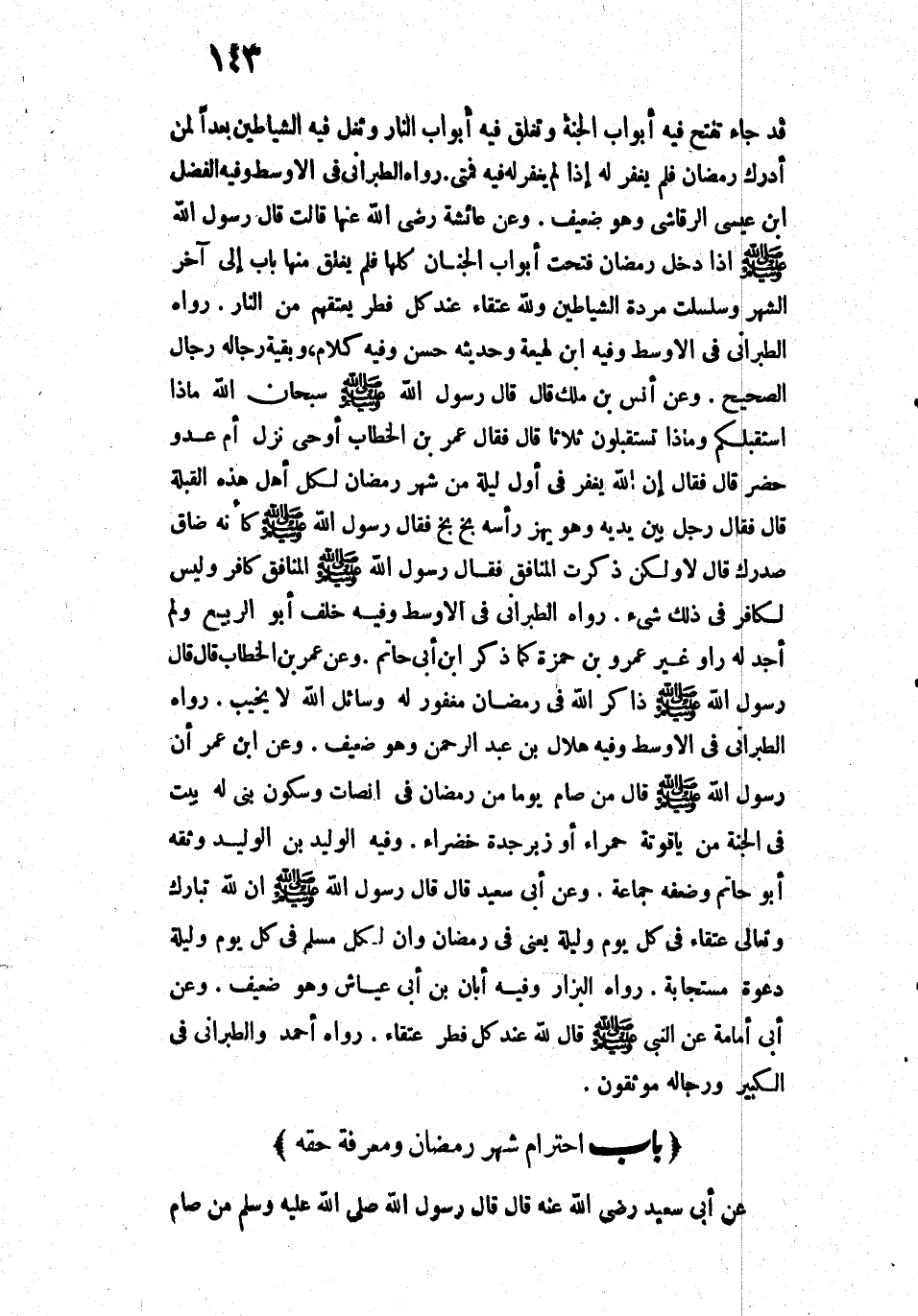 [بَابُ احْتِرَامِ شَهْرِ رَمَضَانَ وَمَعْرِفَةِ حَقِّهِ]