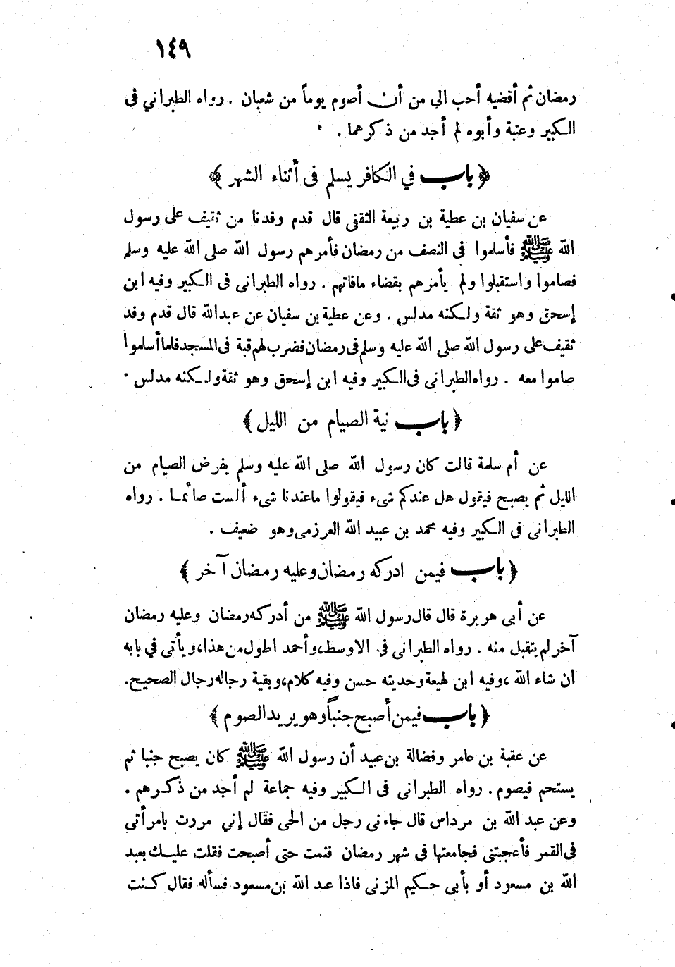 رَوَاهُ الطَّبَرَانِيُّ فِي الْكَبِيرِ، وَفِيهِ ابْنُ إِسْحَاقَ، وَهُوَ ثِقَةٌ، وَلَكِنَّهُ مُدَلِّسٌ.