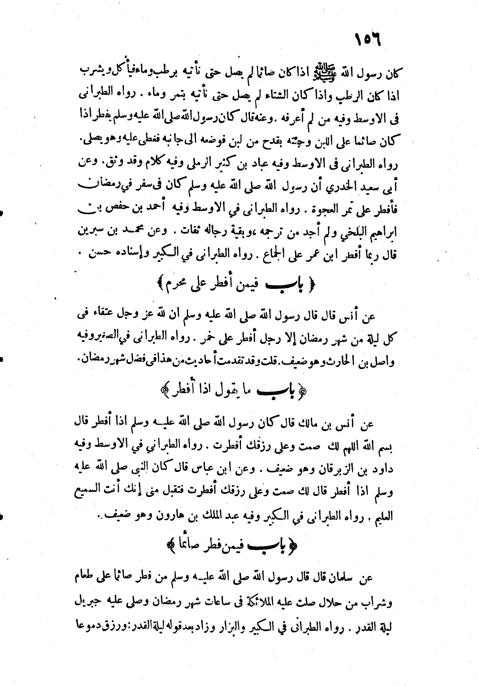 «كَانَ رَسُولُ اللَّهِ صَلَّى اللَّهُ عَلَيْهِ وَسَلَّمَ إِذَا كَانَ صَائِمًا لَمْ يُصَلِّ حَتَّى نَأْتِيَهُ بِرُطَبٍ وَمَاءٍ، فَيَأْكُلُ وَيَشْرَبُ إِذَا كَانَ الرُّطَبُ، وَإِذَا كَانَ الشِّتَاءُ لَمْ يُصَلِّ حَتَّى نَأْتِيَهُ بِتَمْرٍ وَمَاءٍ».
