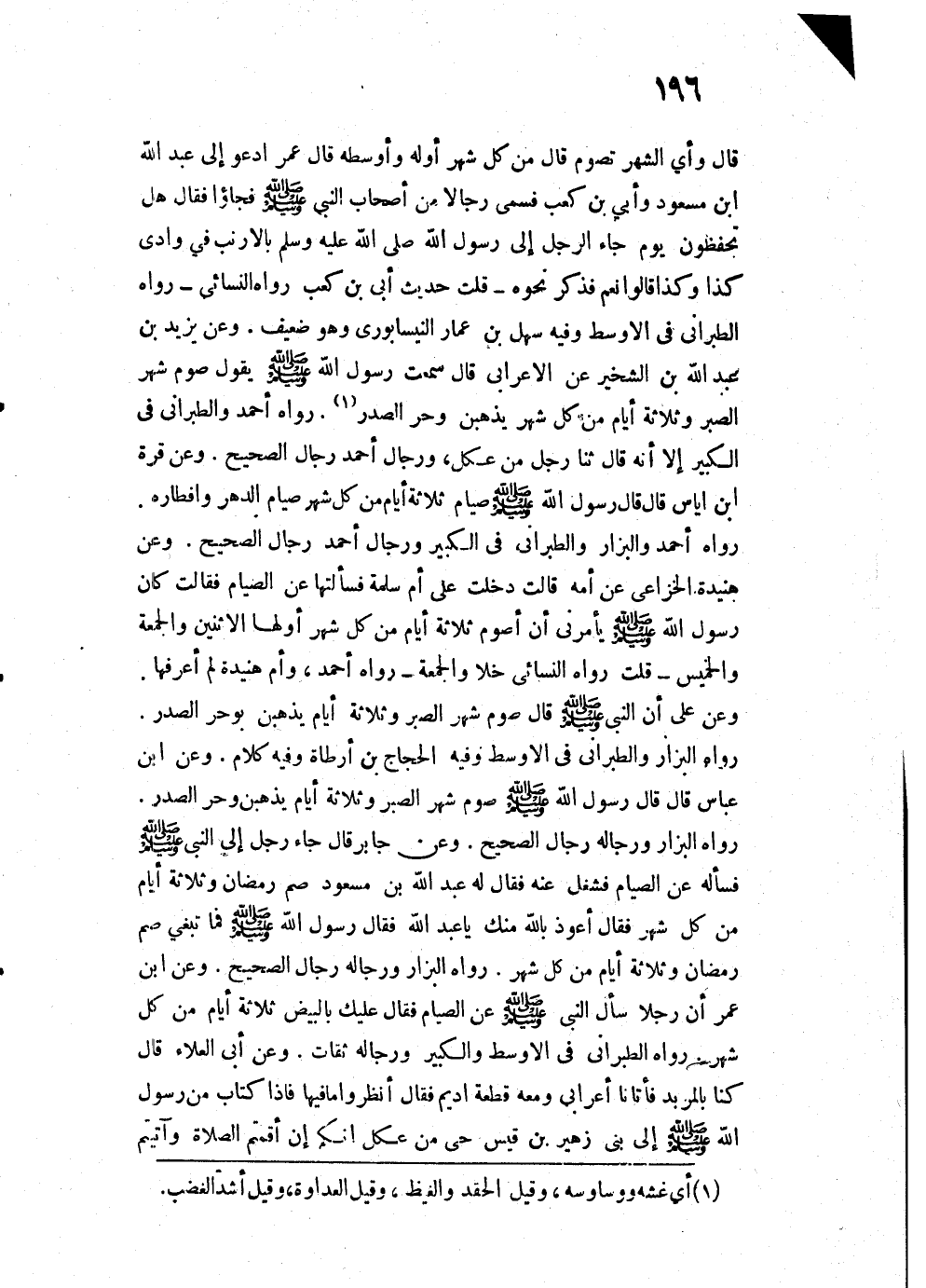 5188 - وَعَنِ ابْنِ عَبَّاسٍ قَالَ: قَالَ رَسُولُ اللَّهِ صَلَّى اللَّهُ عَلَيْهِ وَسَلَّمَ: «صَوْمُ شَهْرِ الصَّبْرِ وَثَلَاثَةِ أَيَّامٍ مِنْ كُلِّ شَهْرٍ يُذْهِبْنَ وَحَرَ الصَّدْرِ».