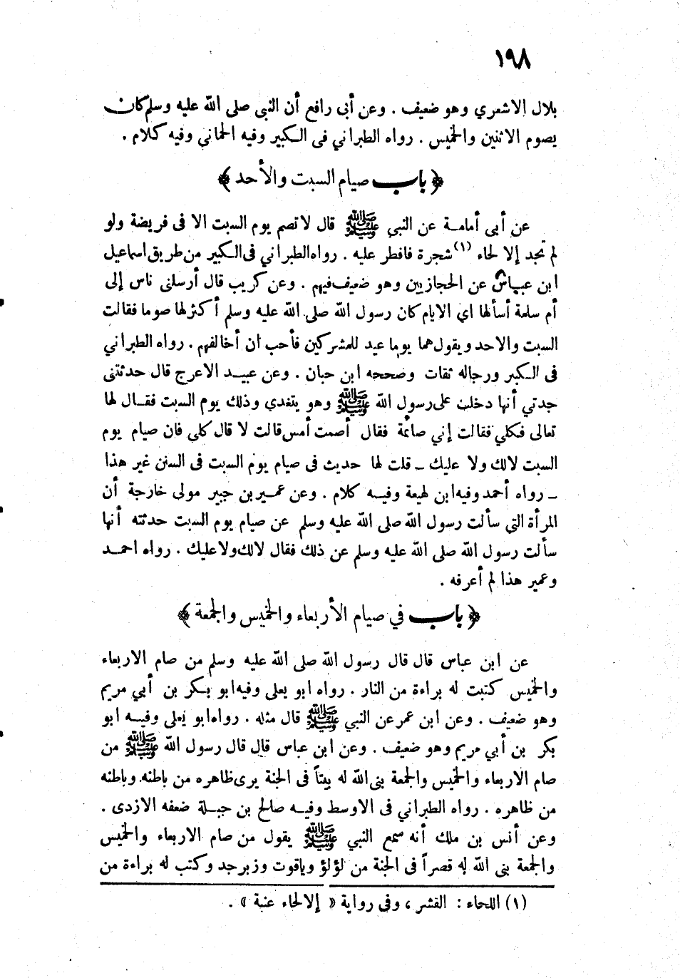 5198 - عَنْ أَبِي أُمَامَةَ عَنِ النَّبِيِّ صَلَّى اللَّهُ عَلَيْهِ وَسَلَّمَ قَالَ: «لَا تَصُمْ يَوْمَ السَّبْتِ إِلَّا فِي فَرِيضَةٍ، وَلَوْ لَمْ تَجِدْ إِلَّا لِحَاءَ شَجَرَةٍ فَأَفْطِرْ عَلَيْهِ».