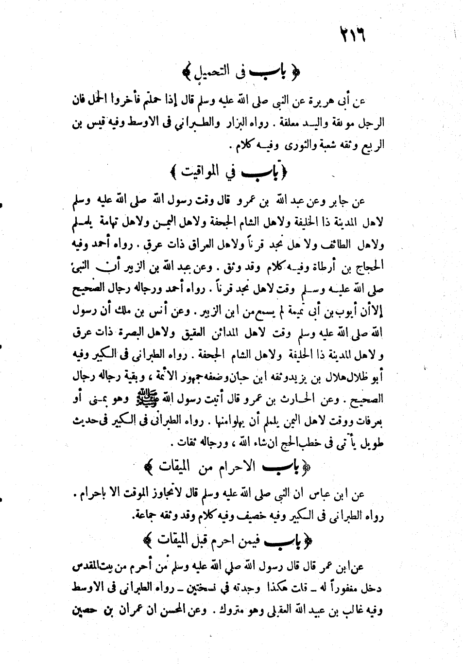 5319 - عَنِ ابْنِ عَبَّاسٍ «أَنَّ النَّبِيَّ صَلَّى اللَّهُ عَلَيْهِ وَسَلَّمَ قَالَ: " لَا تُجَاوِزِ الْمُوَقَّتَ إِلَّا بِإِحْرَامٍ».