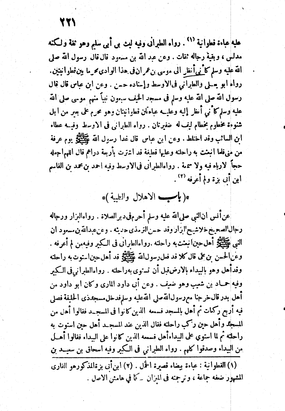 رَوَاهُ الطَّبَرَانِيُّ، وَفِيهِ لَيْثُ بْنُ أَبِي سُلَيْمٍ، وَهُوَ ثِقَةٌ وَلَكِنَّهُ مُدَلِّسٌ، وَبَقِيَّةُ رِجَالِهِ ثِقَاتٌ.