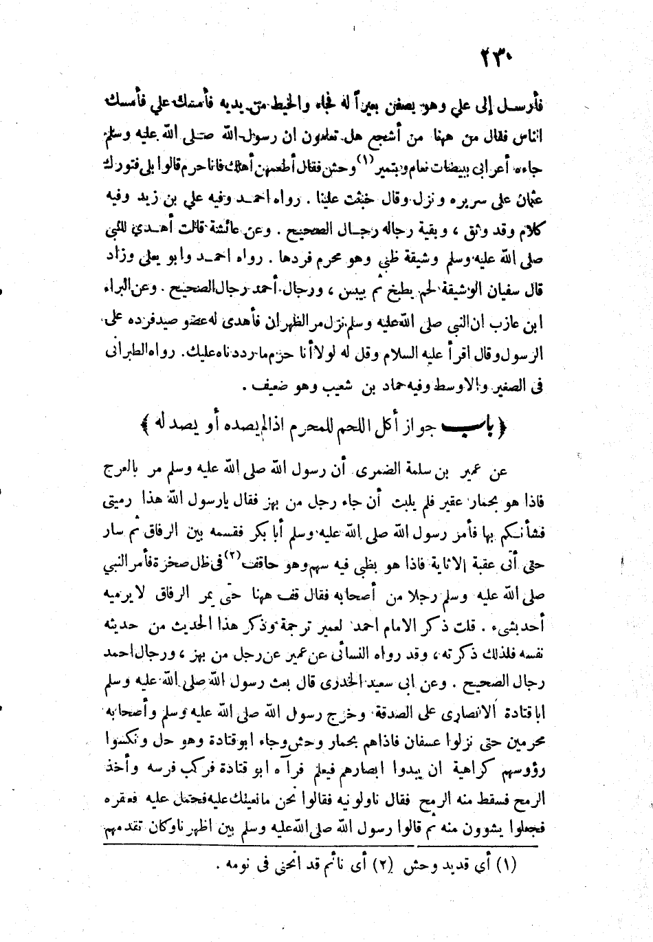 [بَابُ جَوَازِ أَكْلِ اللَّحْمِ لِلْمُحْرِمِ إِذَا لَمْ يَصِدْهُ أَوْ يُصَدْ لَهُ]