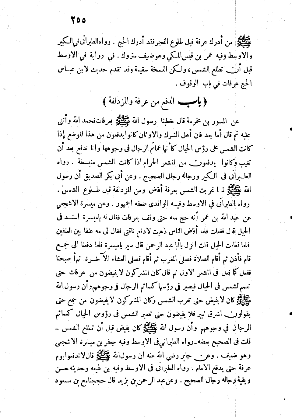 صَلَّى اللَّهُ عَلَيْهِ وَسَلَّمَ: «مَنْ أَدْرَكَ عَرَفَةَ قَبْلَ طُلُوعِ الْفَجْرِ فَقَدْ أَدْرَكَ الْحَجَّ».