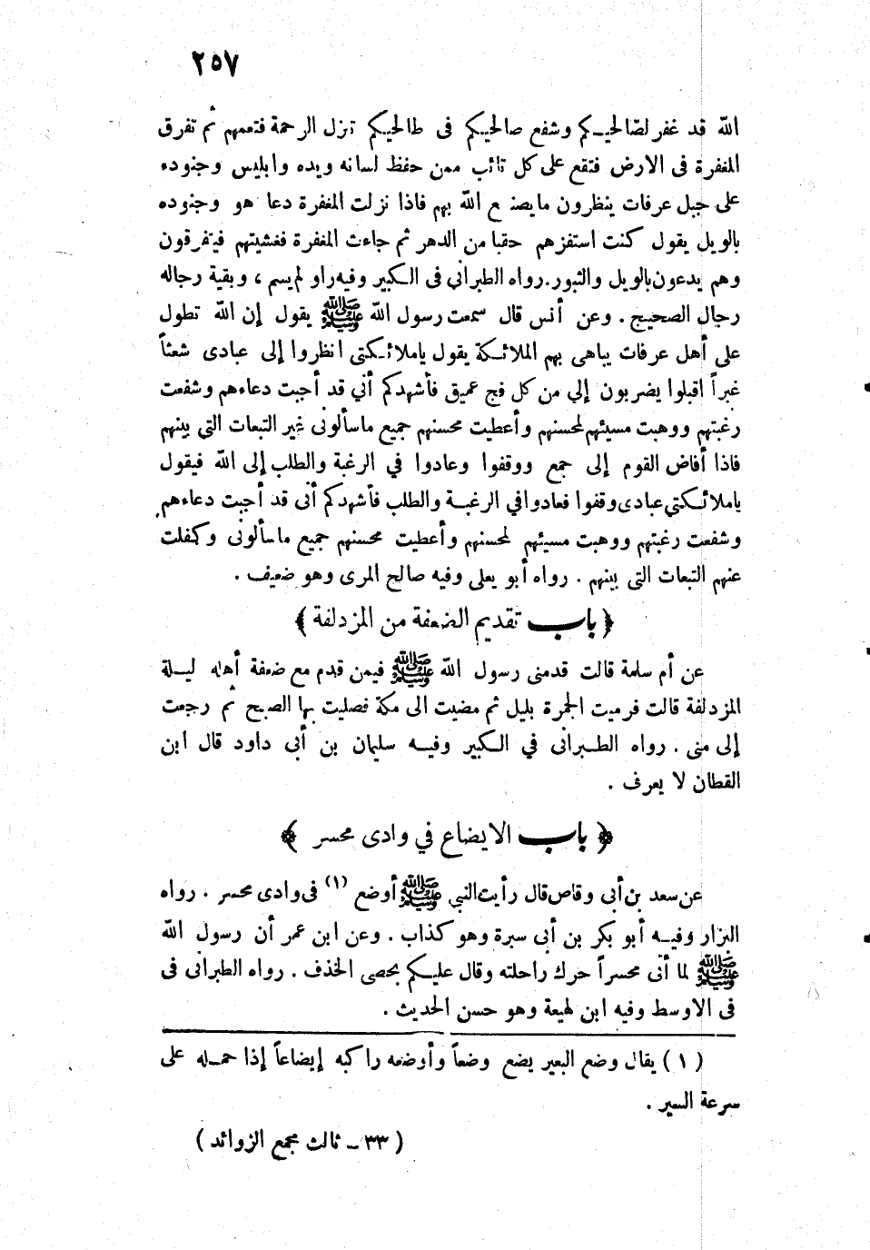 5571 - عَنْ سَعْدِ بْنِ أَبِي وَقَّاصٍ قَالَ: «رَأَيْتُ النَّبِيَّ صَلَّى اللَّهُ عَلَيْهِ وَسَلَّمَ أَوْضَعَ فِي وَادِي مُحَسِّرٍ».