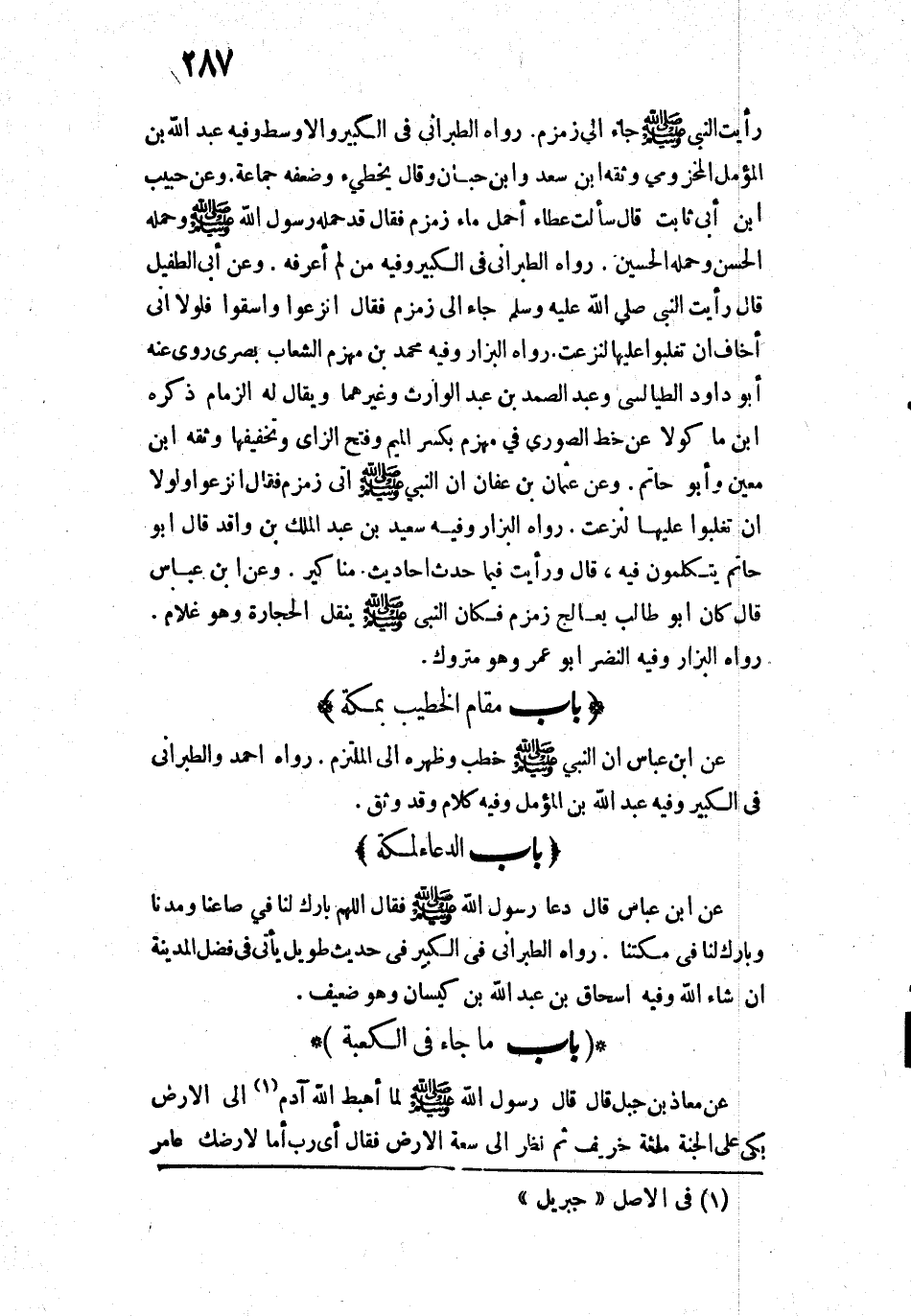«رَأَيْتُ النَّبِيَّ - صَلَّى اللَّهُ عَلَيْهِ وَسَلَّمَ - جَاءَ إِلَى زَمْزَمَ».