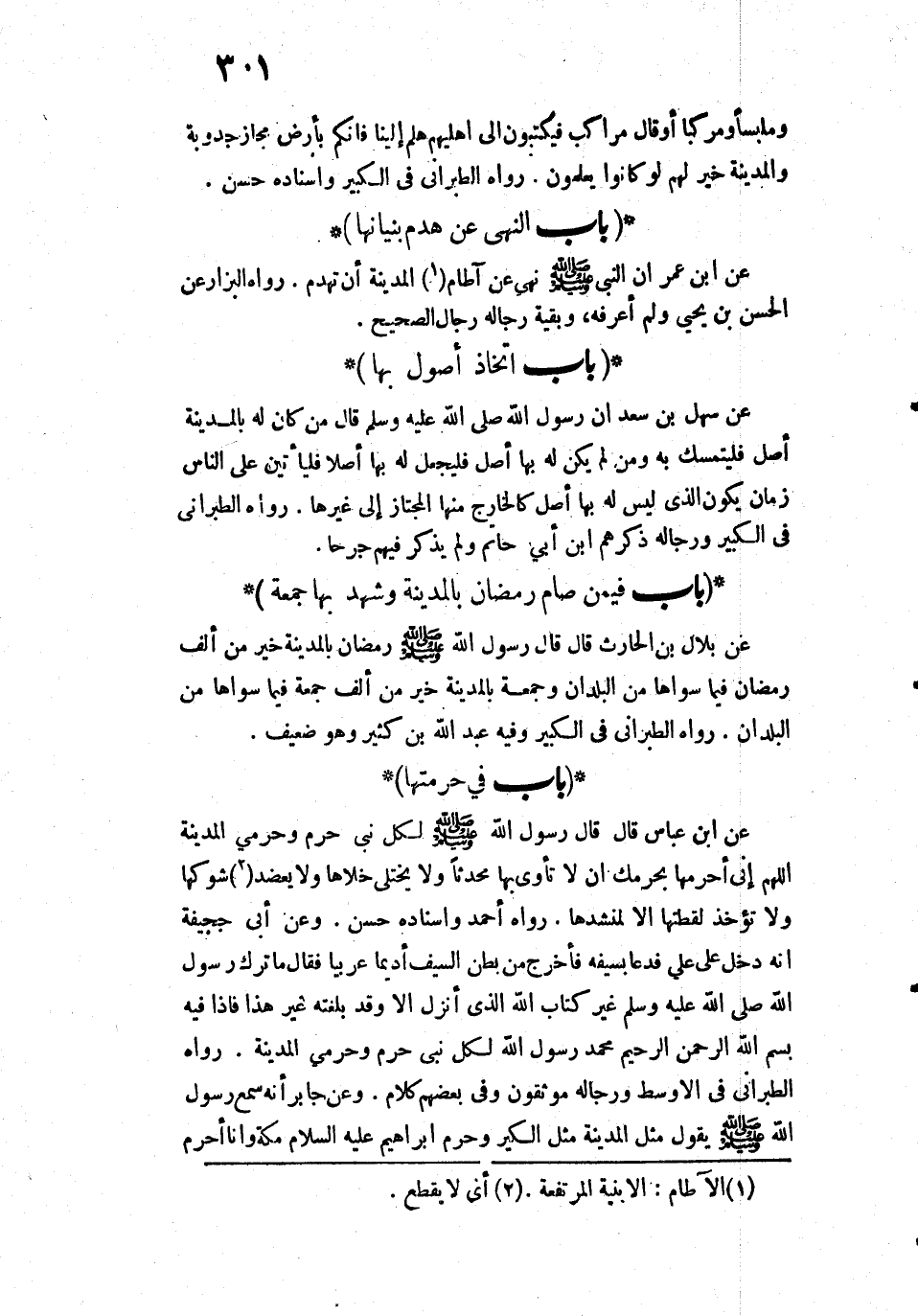 5789 - عَنِ ابْنِ عُمَرَ «أَنَّ النَّبِيَّ - صَلَّى اللَّهُ عَلَيْهِ وَسَلَّمَ - نَهَى عَنْ آطَامِ الْمَدِينَةِ أَنْ تُهْدَمَ».