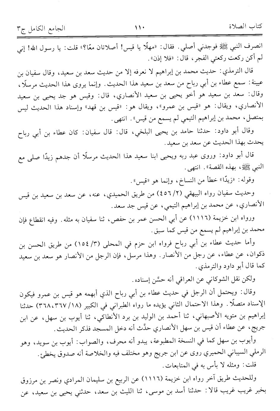 قال الترمذي: حديث محمد بن إبراهيم لا نعرفه إلا من حديث سعد بن سعيد، وقال سفيان بن عيينة: سمع عطاء بن أبي رباح من سعد بن سعيد هذا الحديث، وإنما يروى هذا الحديث مرسلًا، وقال: سعد بن سعيد هو أخو يحيى بن سعيد الأنصاري، قال: وقيس هو جد يحيى بن سعيد الأنصاري، ويقال: هو "قيس بن عمرو"، ويقال هو: "قيس بن قهد" وإسناد هذا الحديث ليس بمتصل، محمد بن إبراهيم التيمي لم يسمع من قيس". انتهى
