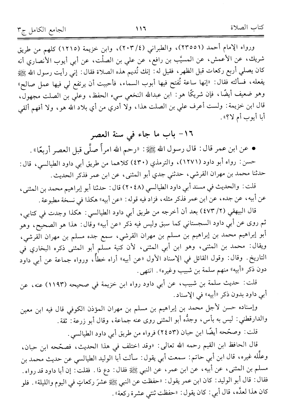 • عن ابن عمر قال: قال رسول الله صلى الله عليه وسلم: "رحم الله امرأً صلَّى قبل العصر أربعًا".