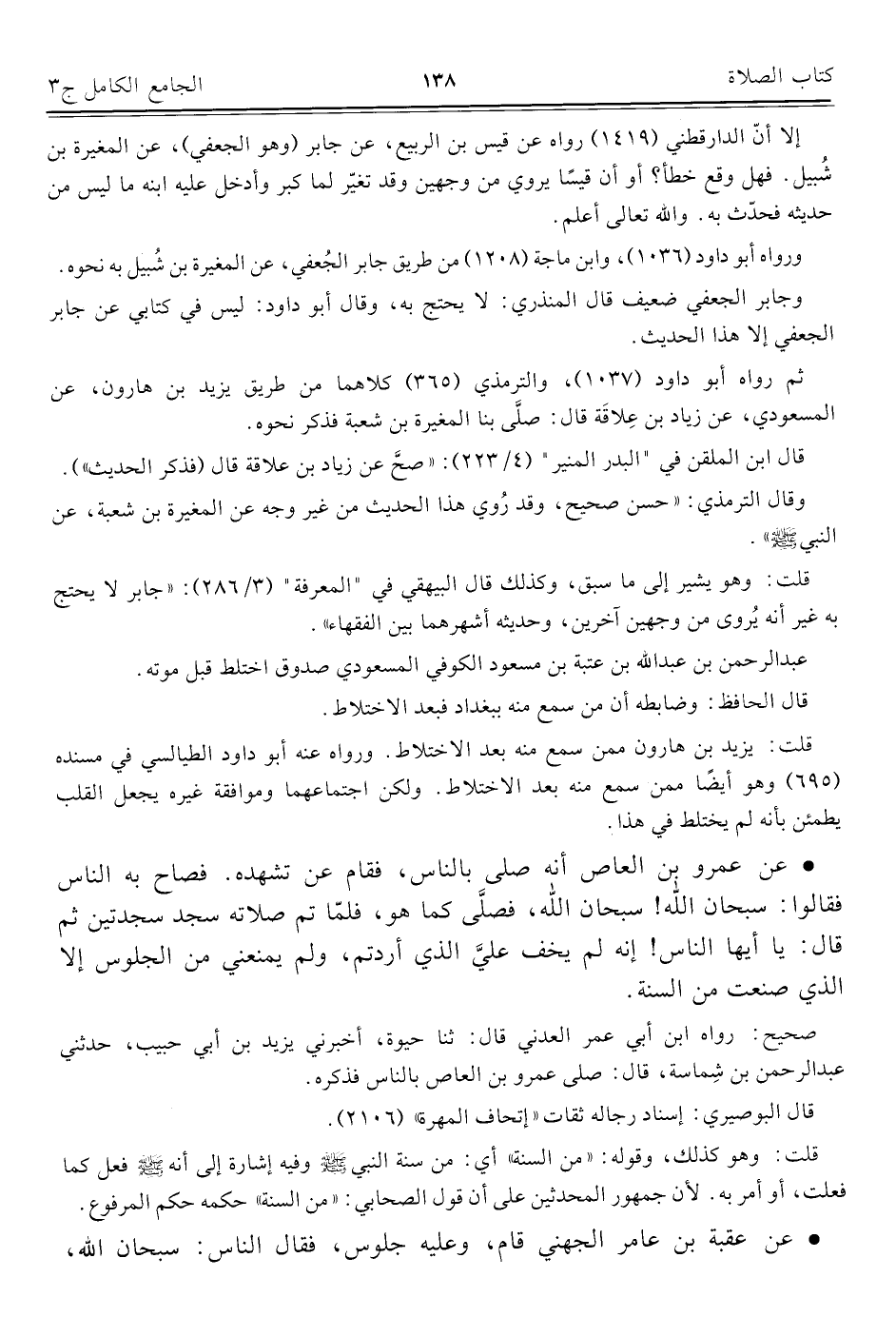 إلا أن الدارقطني (١٤١٩) رواه عن قيس بن الربيع، عن جابر (وهو الجعفي)، عن المغيرة بن شُبيل. فهل وقع خطأ؟ أو أن قيسًا يروي من وجهين وقد تغيّر لما كبر وأدخل عليه ابنه ما ليس من حديثه فحدّث به. والله تعالى أعلم.