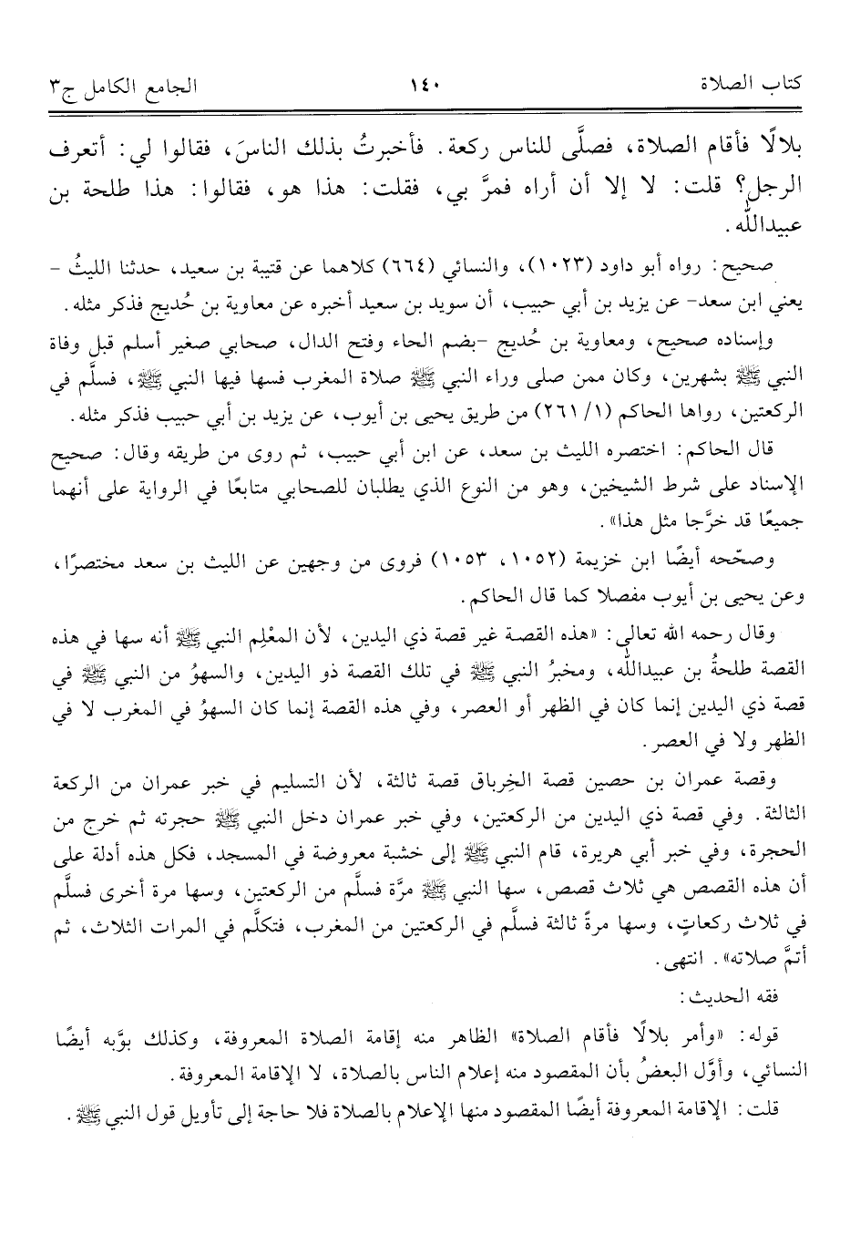 كتاب الجامع الكامل في الحديث الصحيح الشامل المرتب على أبواب الفقه (اسم الجزء: 3)