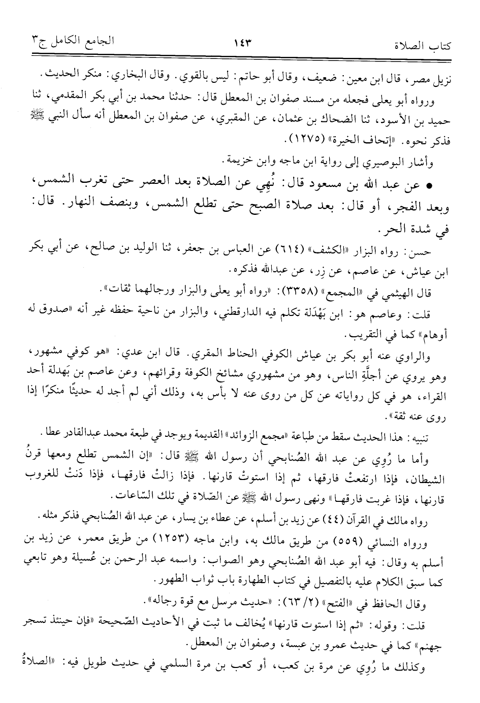 قلت: وقوله: "ثم إذا استوت قارنها" يُخالف ما ثبت في الأحاديث الصحيحة "فإن حينئذ تسجر جهنم" كما في حديث عمرو بن عبسة، وصفوان بن المعطل.