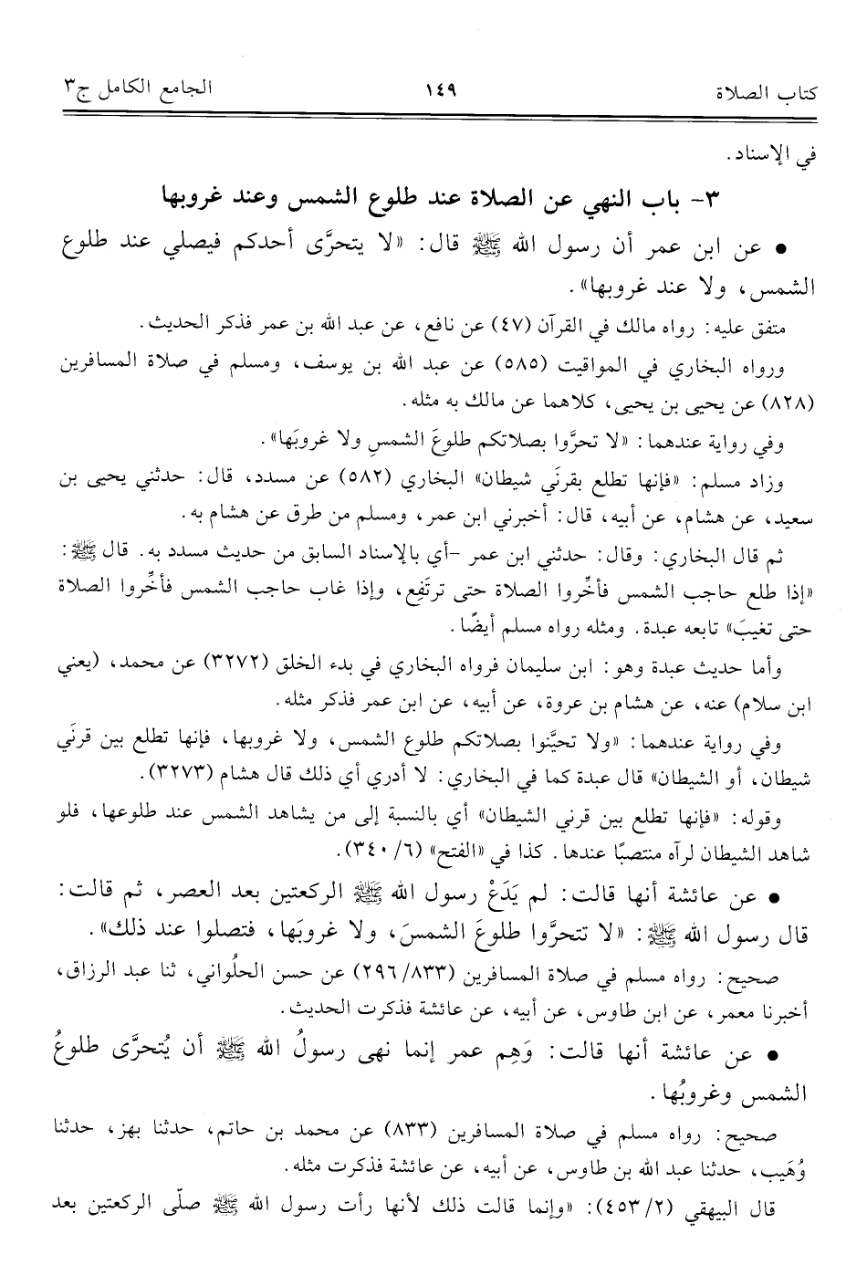 كتاب الجامع الكامل في الحديث الصحيح الشامل المرتب على أبواب الفقه (اسم الجزء: 3)
