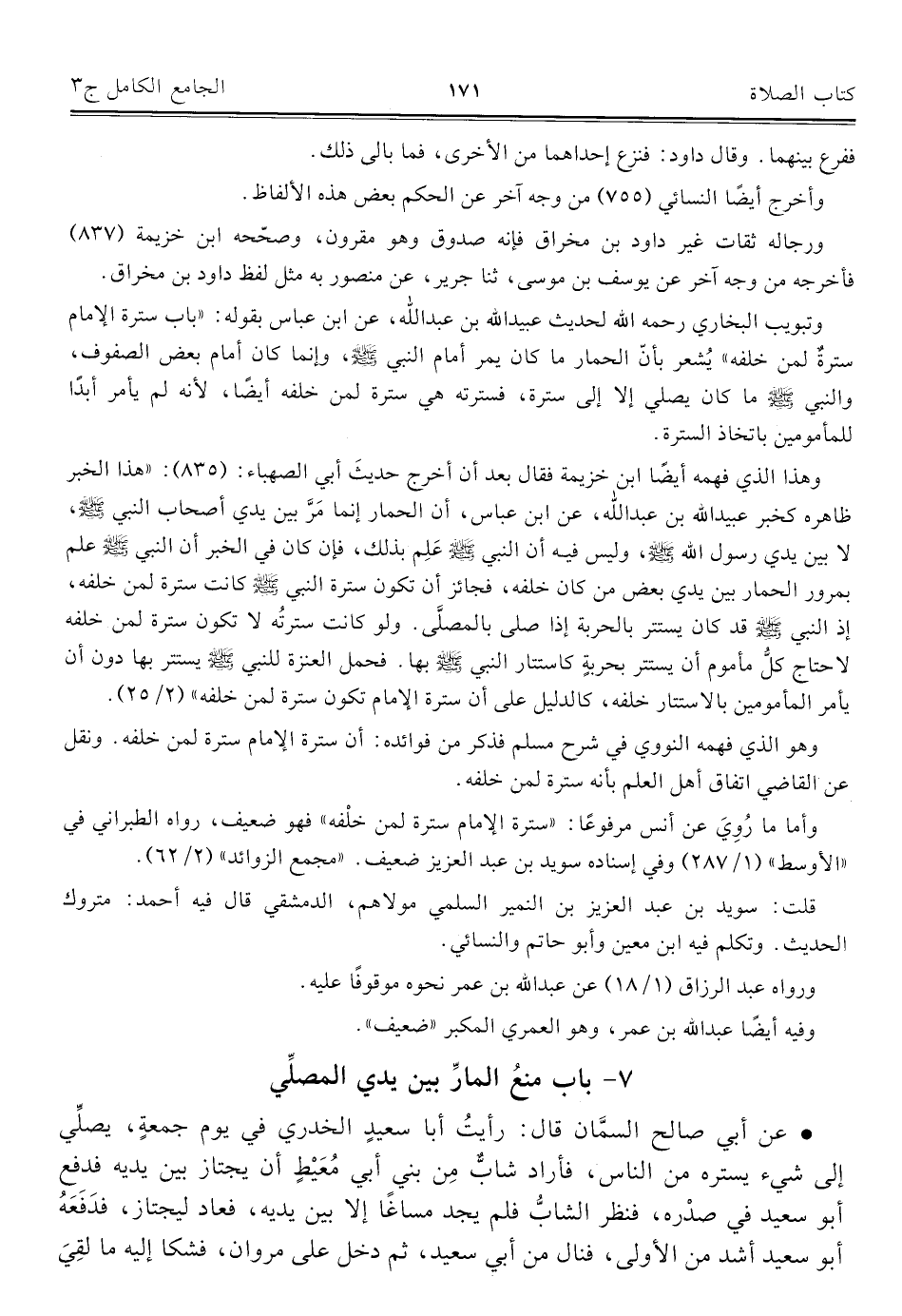 ٧ - باب منعُ المارِّ بين يدي المصلِّي