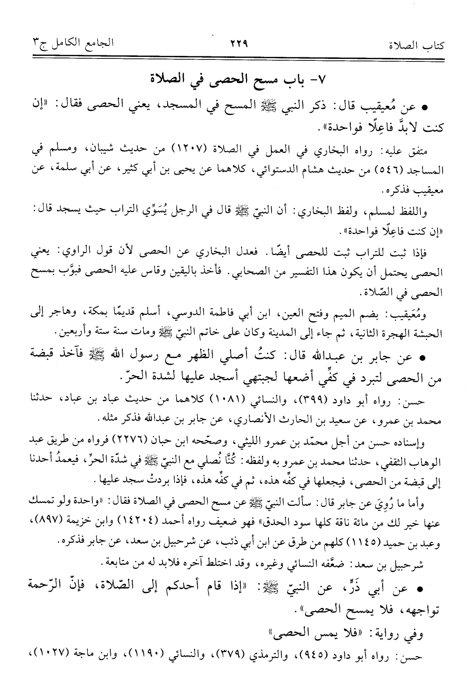 ٧ - باب مسح الحصى في الصلاة