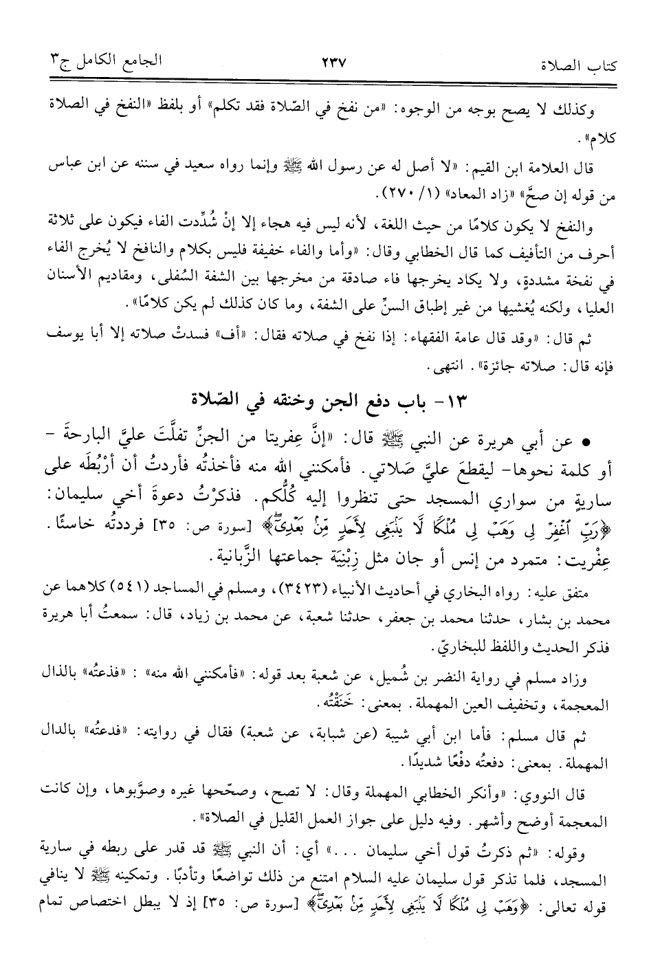 ١٣ - باب دفع الجن وخنقه في الصّلاة