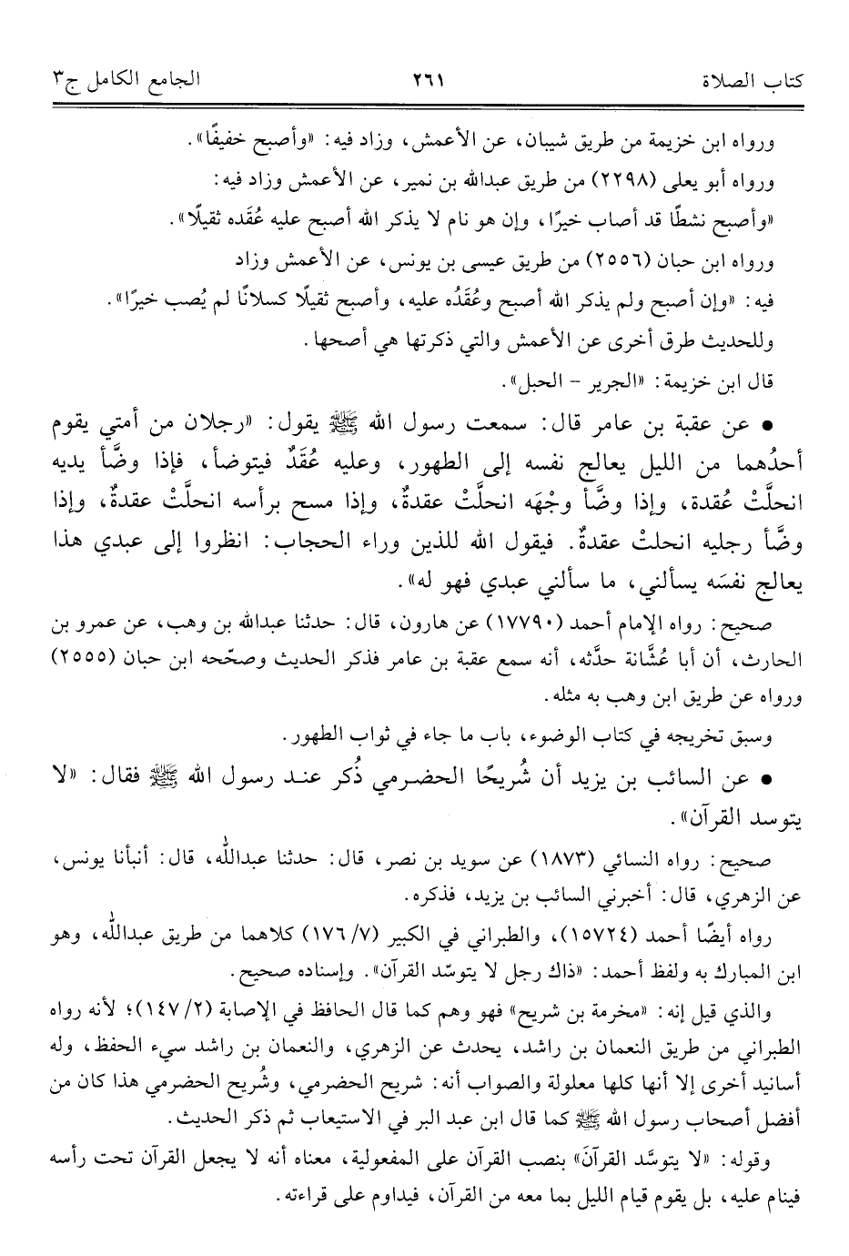 كتاب الجامع الكامل في الحديث الصحيح الشامل المرتب على أبواب الفقه (اسم الجزء: 3)