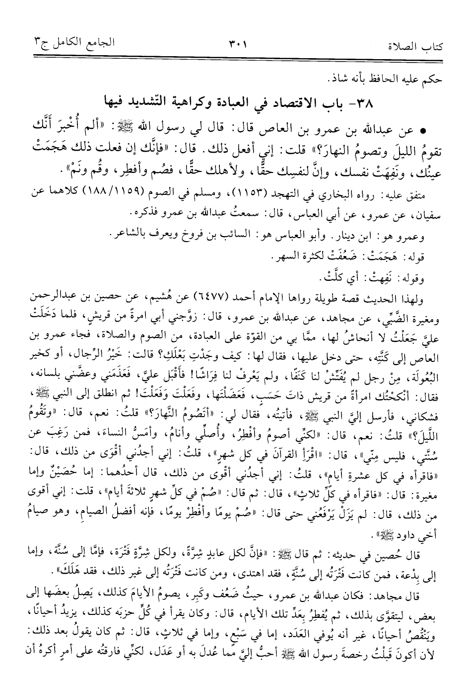 ٣٨ - باب الاقتصاد في العبادة وكراهية التّشديد فيها