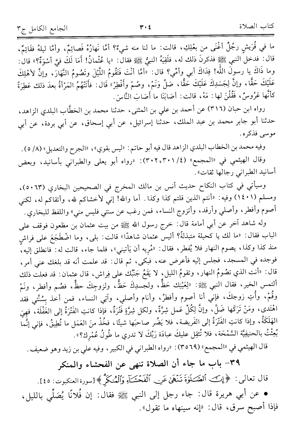 ٣٩ - باب ما جاء أن الصّلاة تنهى عن الفحشاء والمنكر