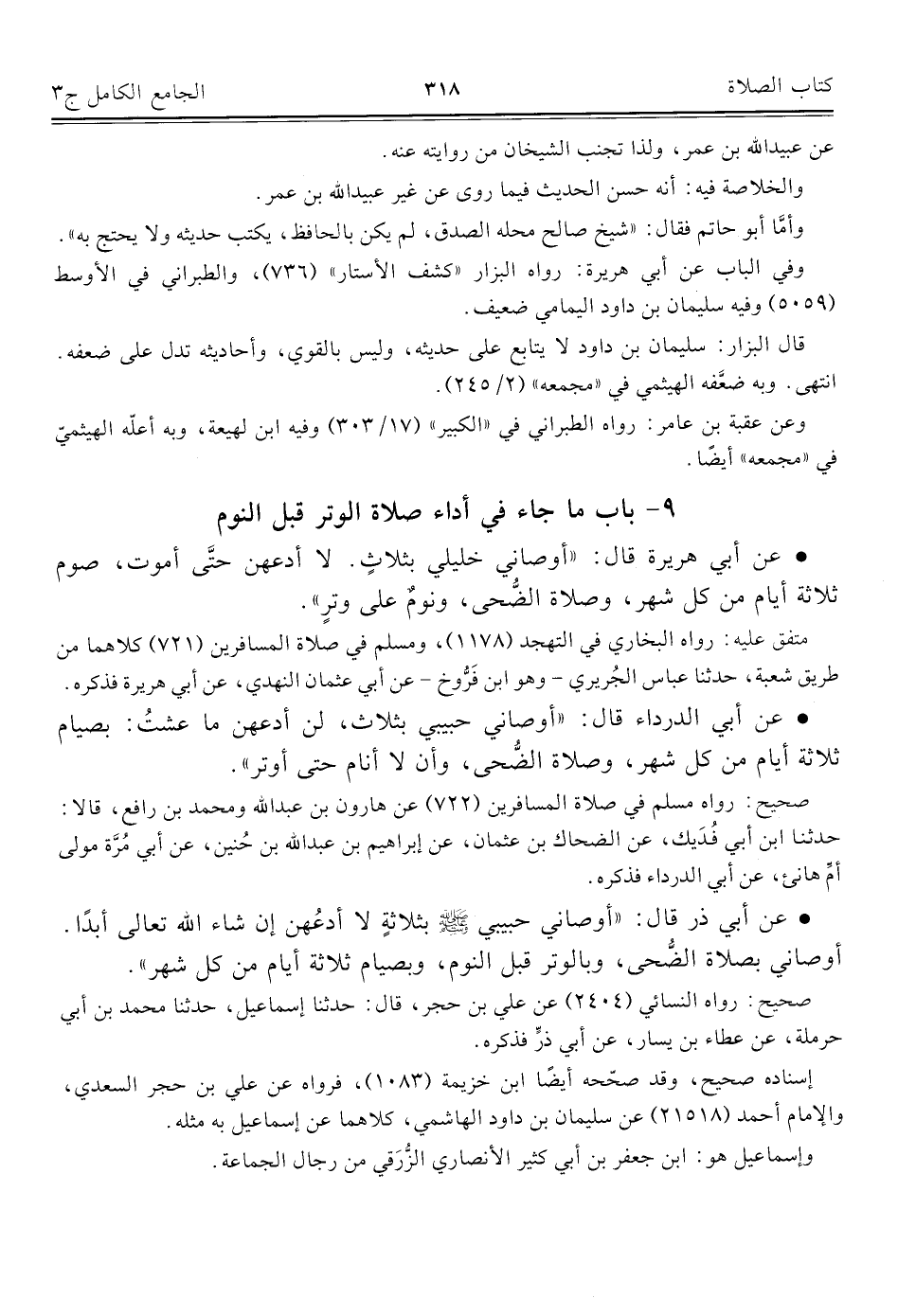 كتاب الجامع الكامل في الحديث الصحيح الشامل المرتب على أبواب الفقه (اسم الجزء: 3)