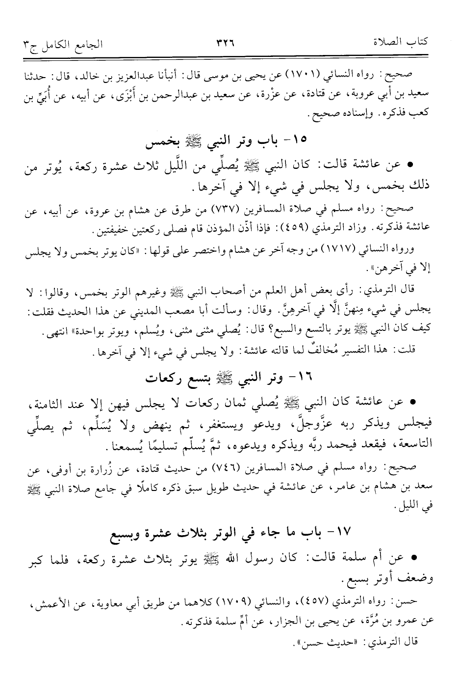 كتاب الجامع الكامل في الحديث الصحيح الشامل المرتب على أبواب الفقه (اسم الجزء: 3)