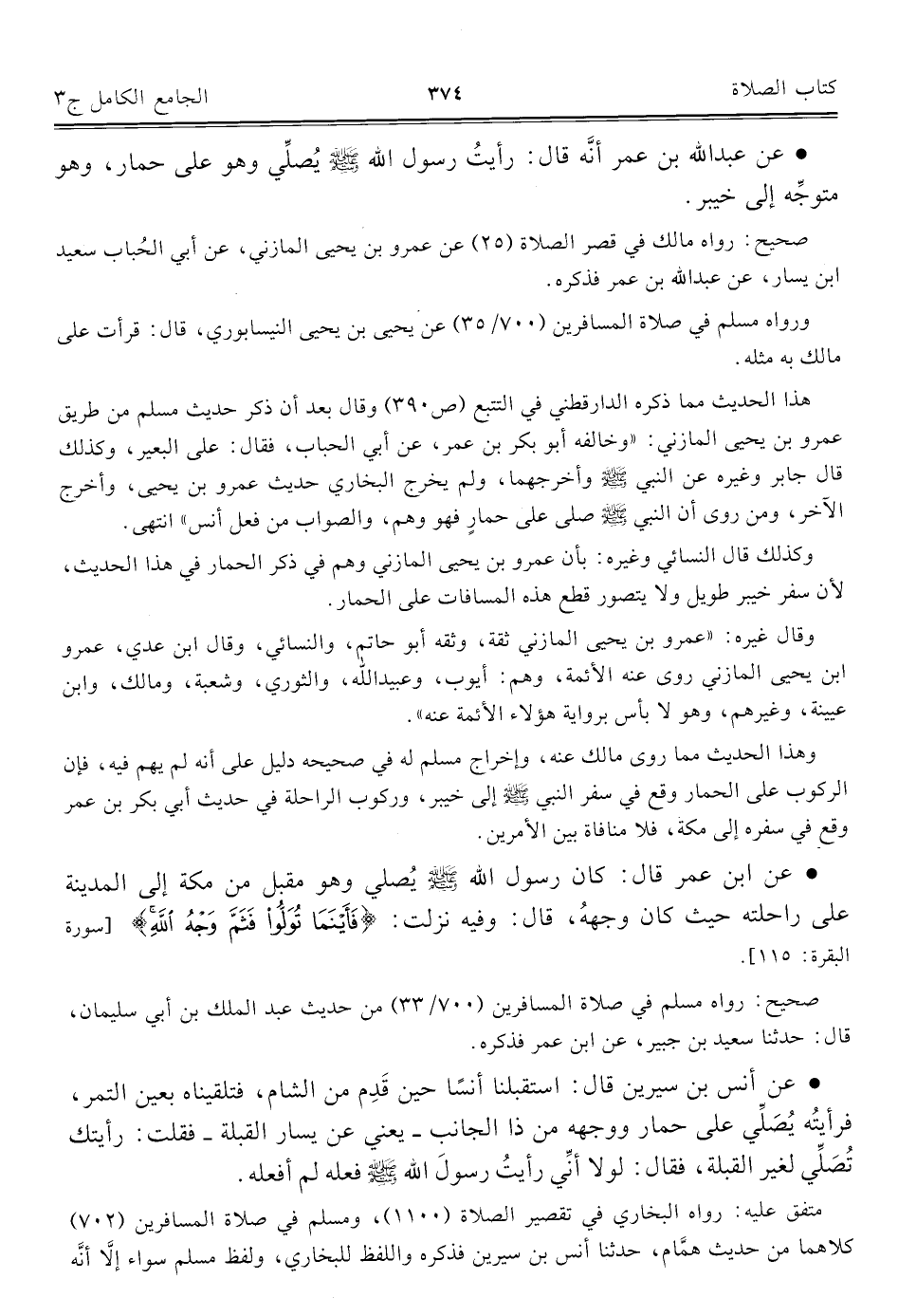 • عن عبد الله بن عمر أنَّه قال: رأيتُ رسول الله - صلى الله عليه وسلم - يُصلي وهو على حمار، وهو متوجِّه إلى خيبر.