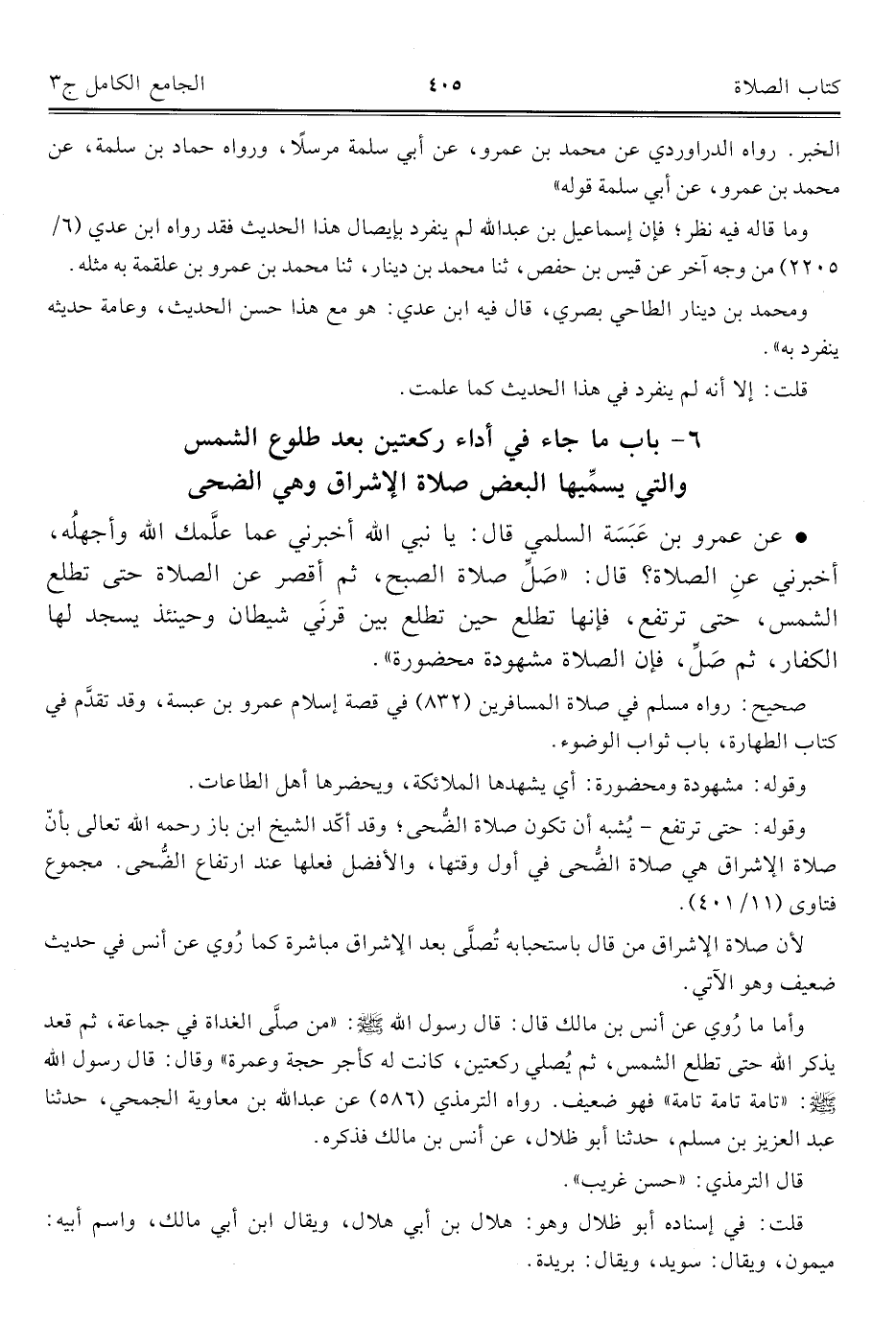 ٦ - باب ما جاء في أداء ركعتين بعد طلوع الشمس والتي يسميها البعض صلاة الإشراق وهي الضحي