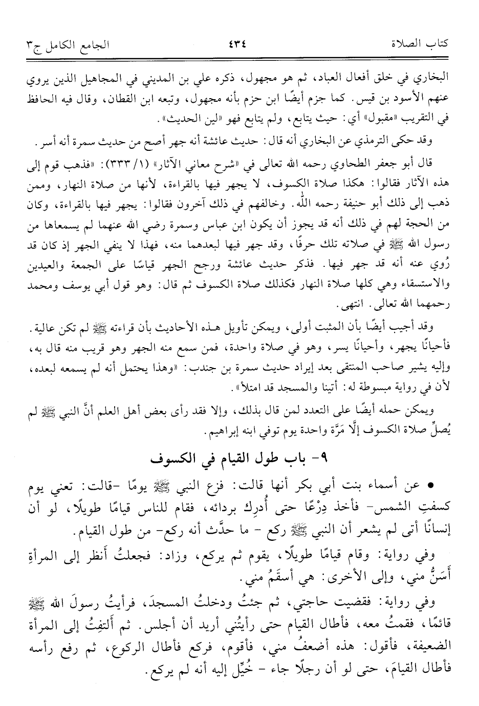 ٩ - باب طول القيام في الكسوف