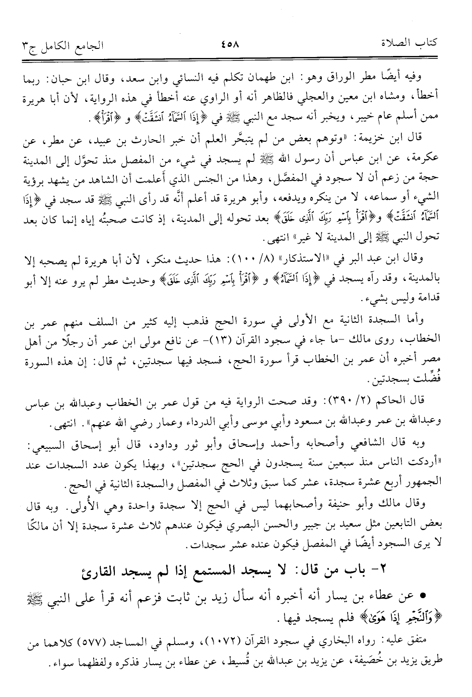 كتاب الجامع الكامل في الحديث الصحيح الشامل المرتب على أبواب الفقه (اسم الجزء: 3)