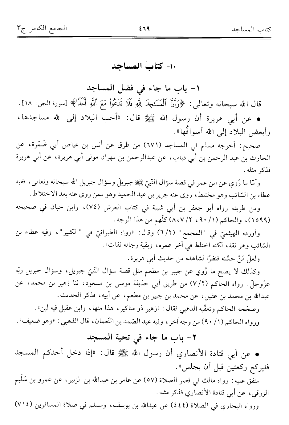 كتاب الجامع الكامل في الحديث الصحيح الشامل المرتب على أبواب الفقه (اسم الجزء: 3)