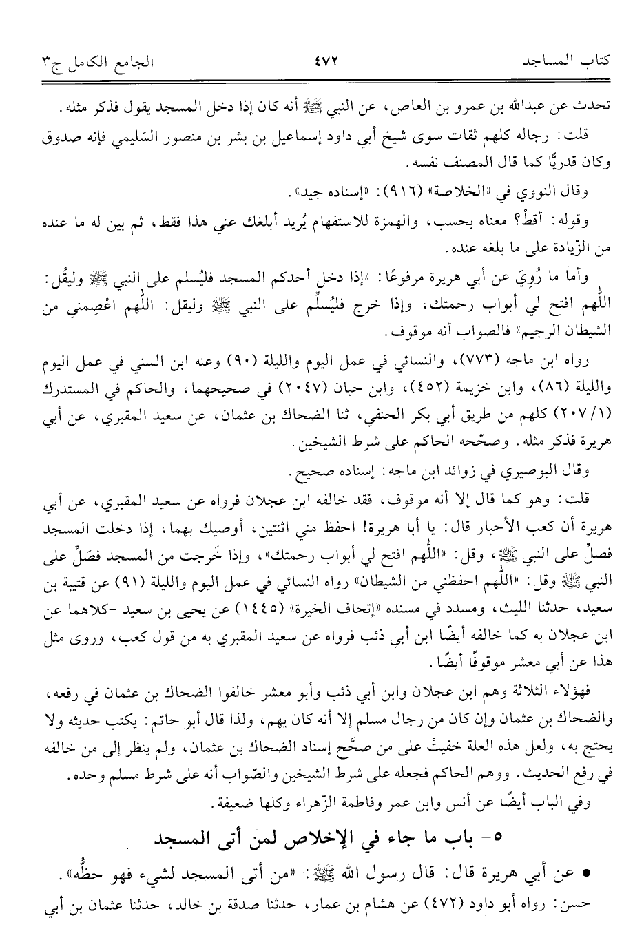 كتاب الجامع الكامل في الحديث الصحيح الشامل المرتب على أبواب الفقه (اسم الجزء: 3)