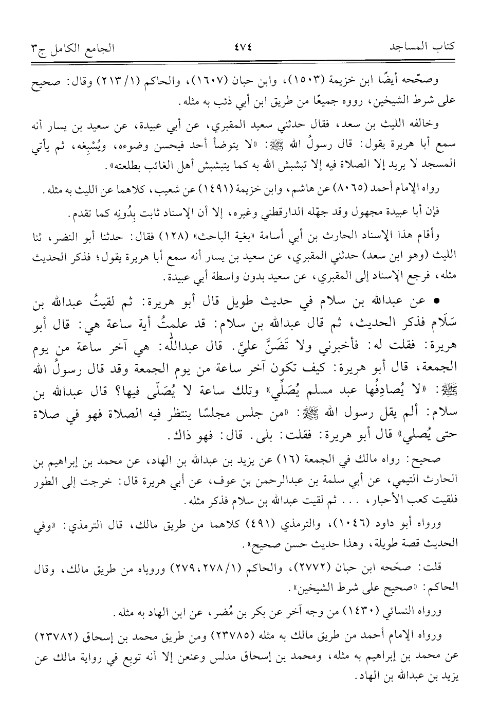 كتاب الجامع الكامل في الحديث الصحيح الشامل المرتب على أبواب الفقه (اسم الجزء: 3)