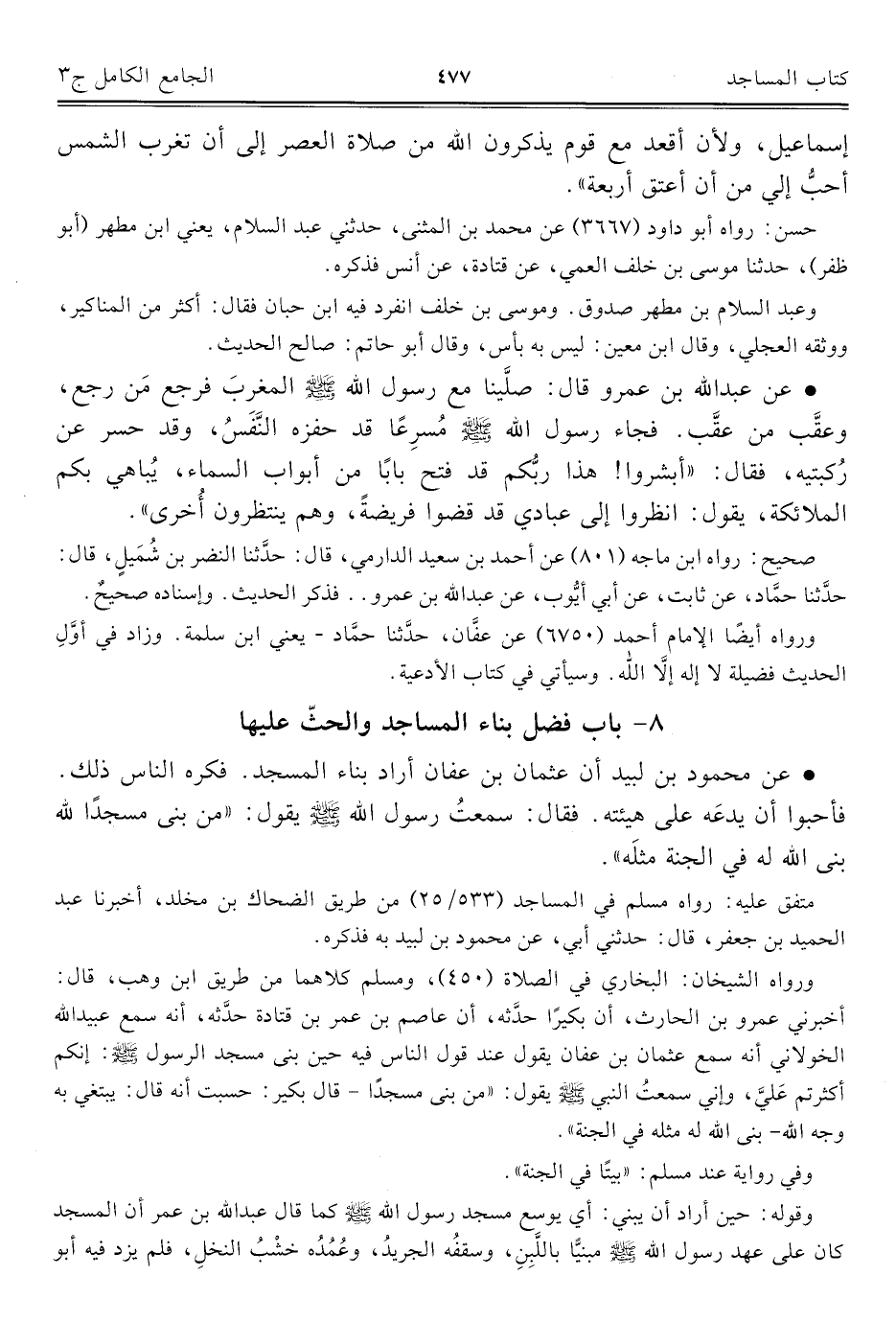٨ - باب فضل بناء المساجد والحثّ عليها