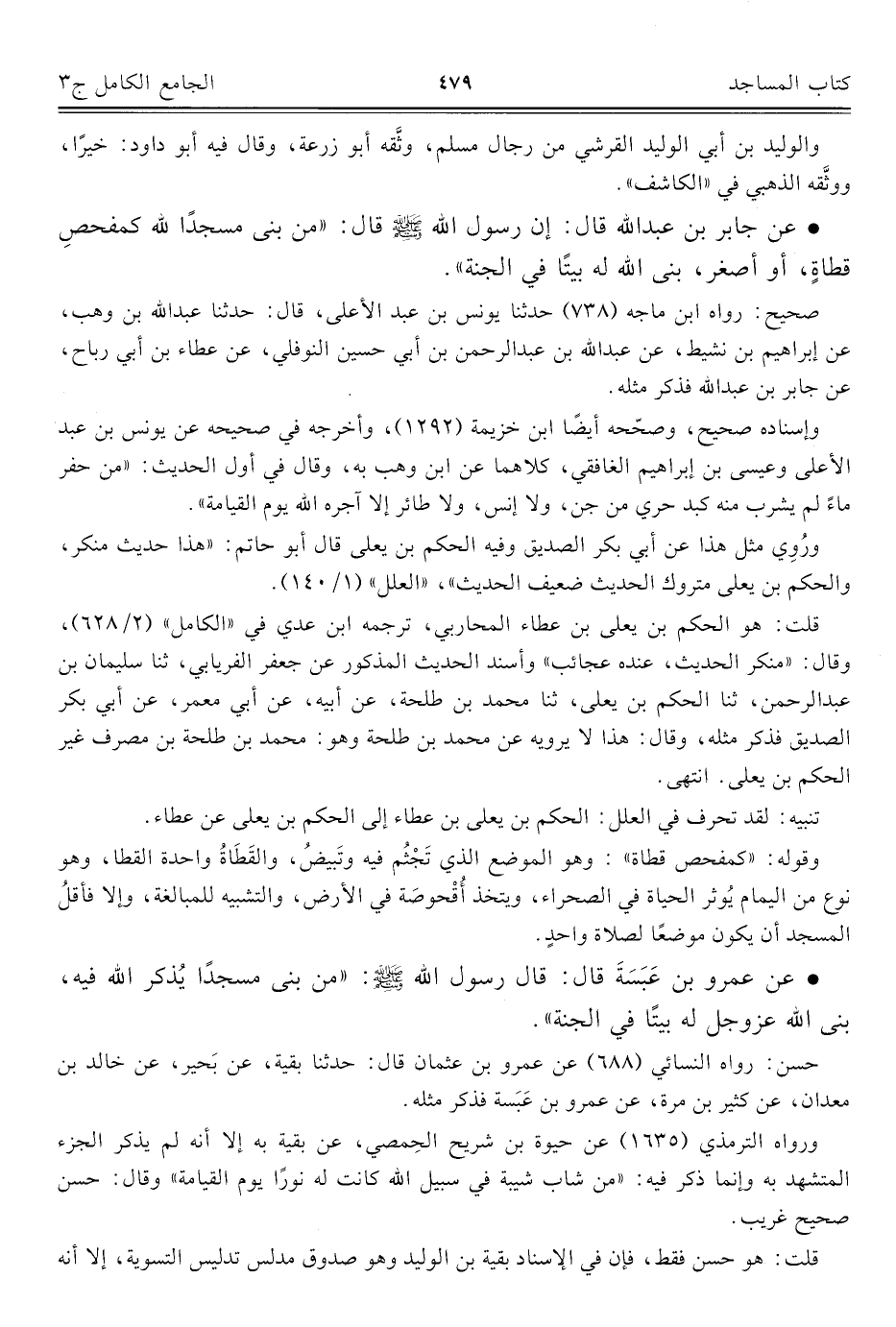 كتاب الجامع الكامل في الحديث الصحيح الشامل المرتب على أبواب الفقه (اسم الجزء: 3)