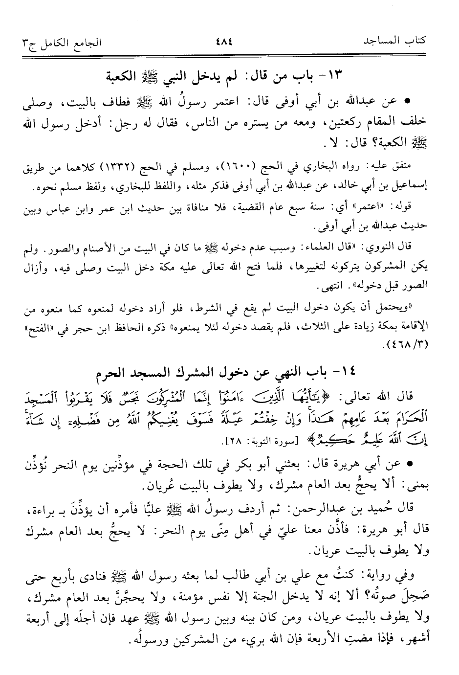 كتاب الجامع الكامل في الحديث الصحيح الشامل المرتب على أبواب الفقه (اسم الجزء: 3)