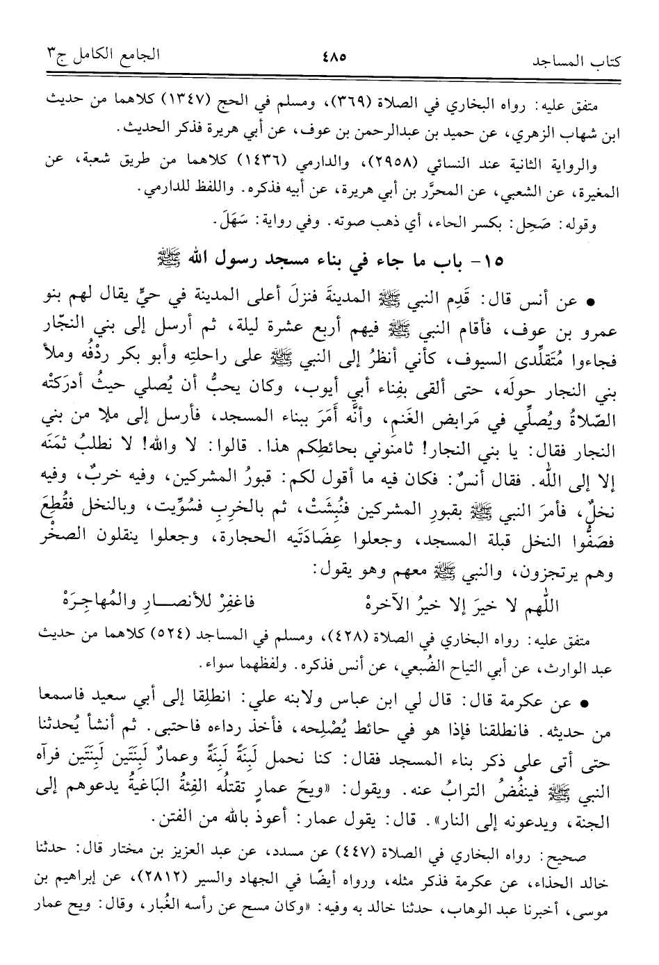 ١٥ - باب ما جاء في بناء مسجد رسول الله - صلى الله عليه وسلم-
