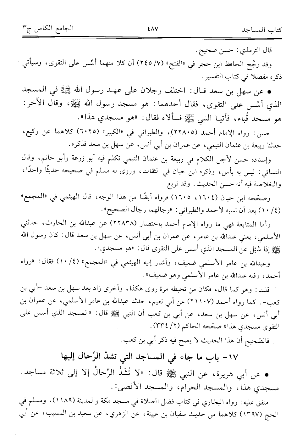 ١٧ - باب ما جاء في المساجد التي تشدّ الرِّحال إليها