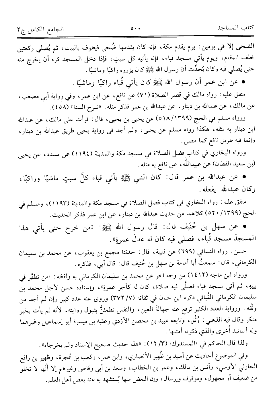 كتاب الجامع الكامل في الحديث الصحيح الشامل المرتب على أبواب الفقه (اسم الجزء: 3)
