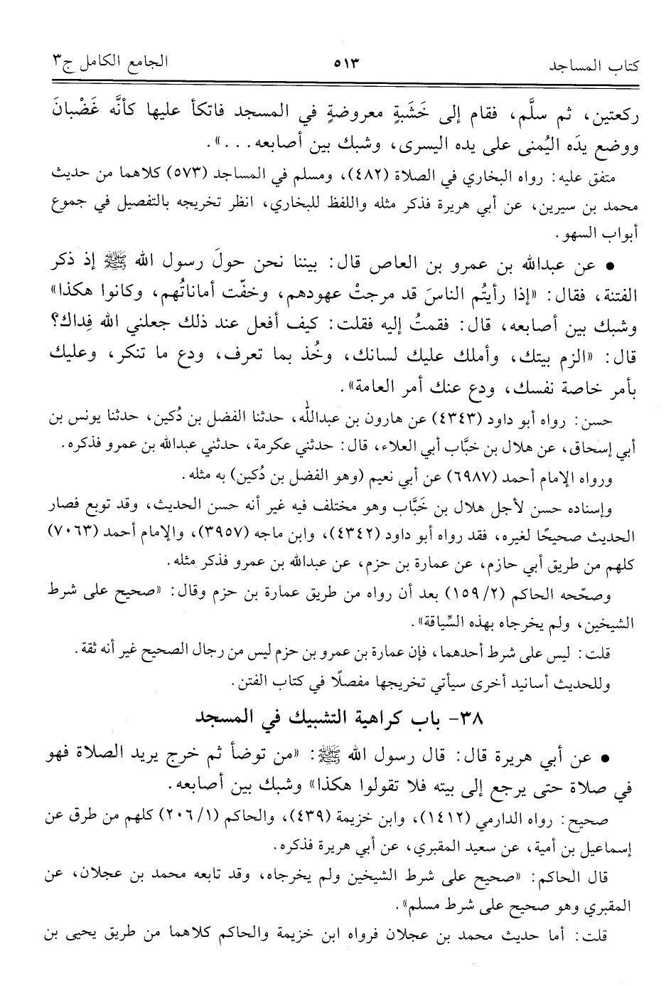 ٣٨ - باب كراهية التشبيك في المسجد