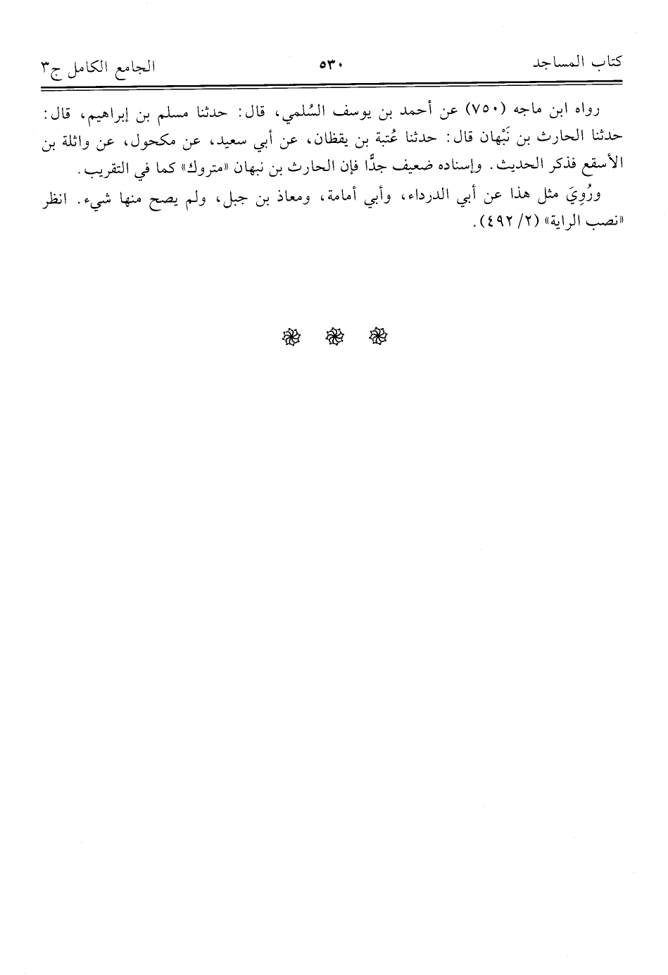 كتاب الجامع الكامل في الحديث الصحيح الشامل المرتب على أبواب الفقه (اسم الجزء: 3)