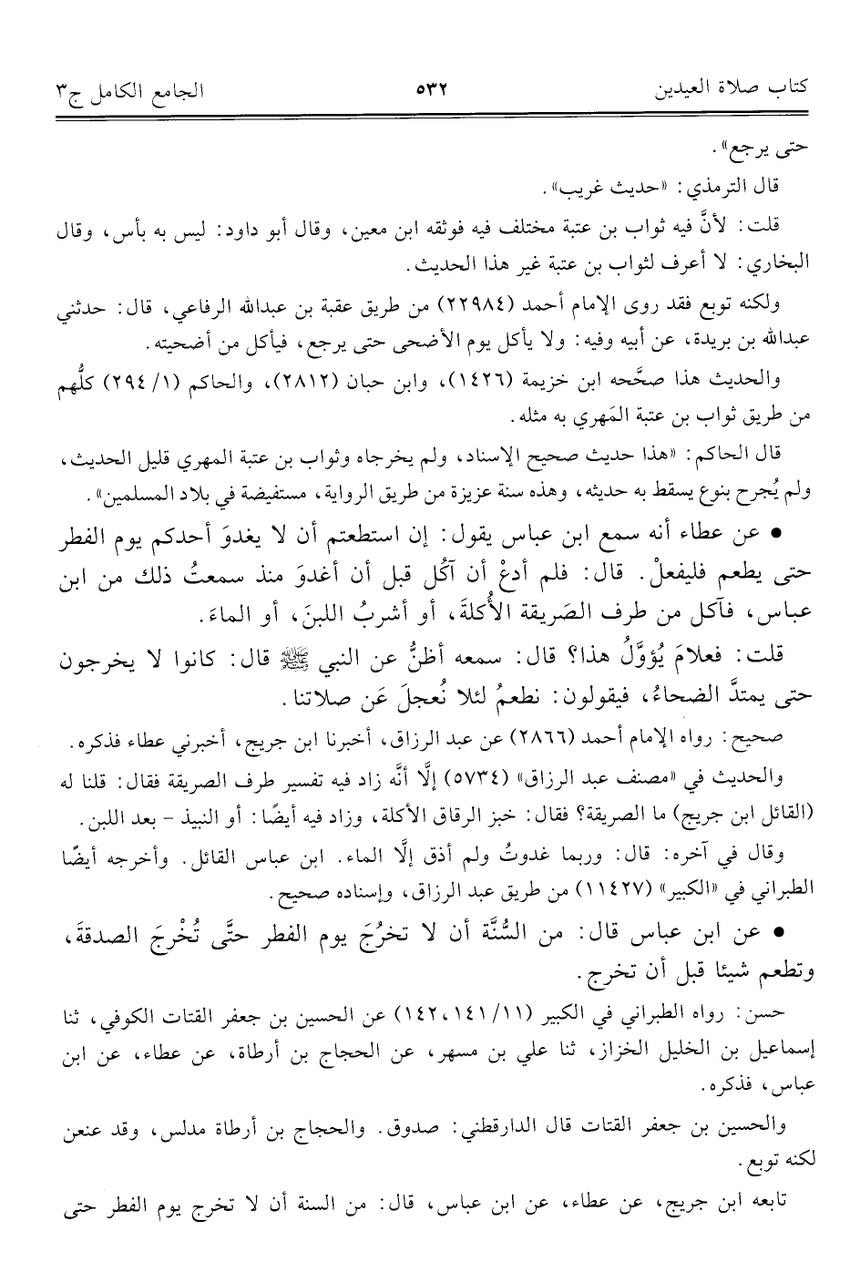 كتاب الجامع الكامل في الحديث الصحيح الشامل المرتب على أبواب الفقه (اسم الجزء: 3)
