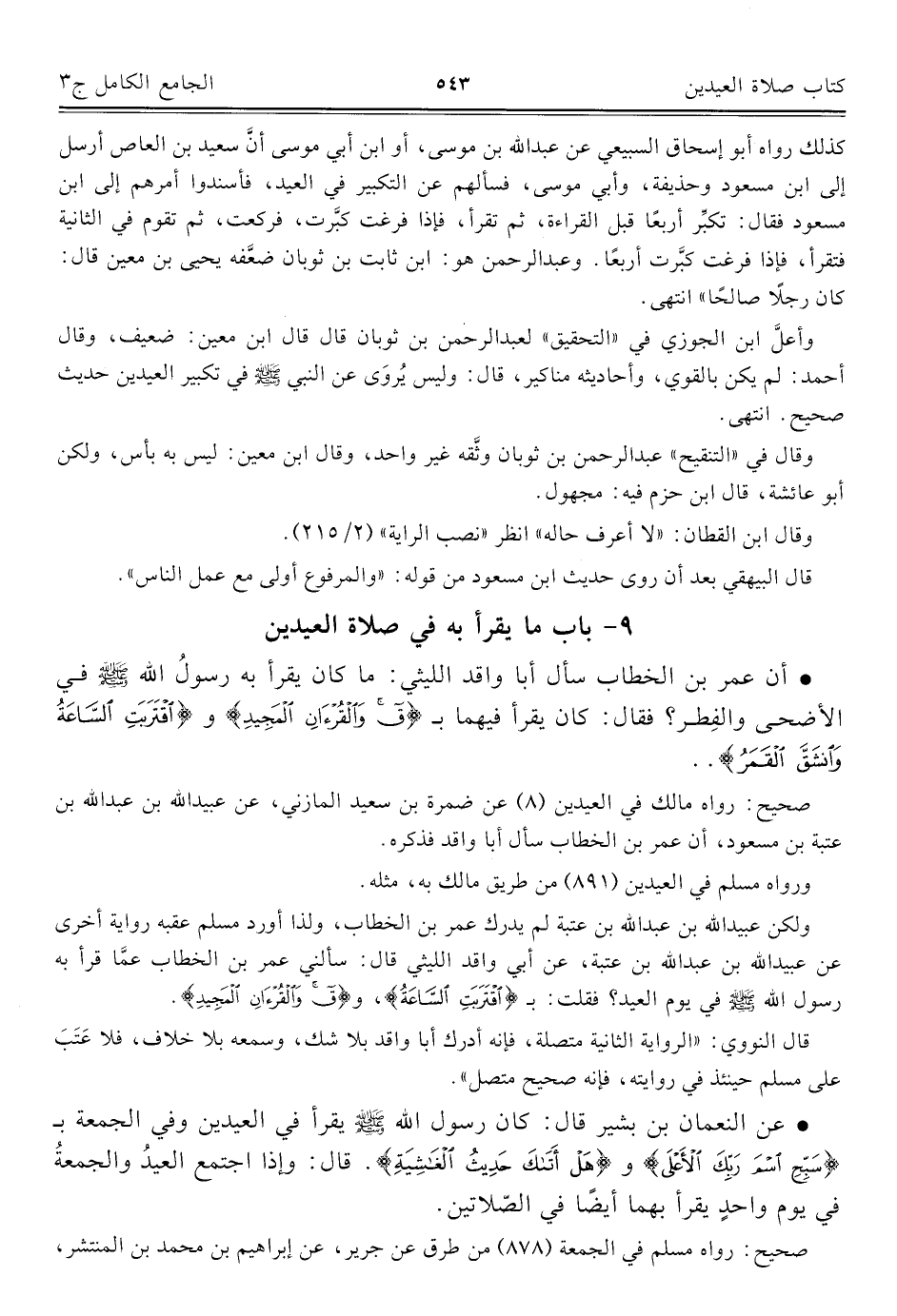 كتاب الجامع الكامل في الحديث الصحيح الشامل المرتب على أبواب الفقه (اسم الجزء: 3)