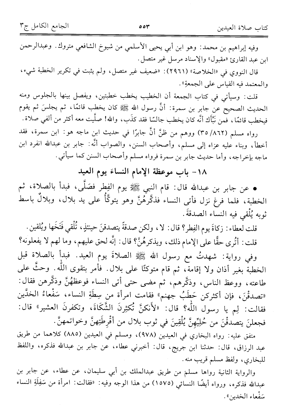 كتاب الجامع الكامل في الحديث الصحيح الشامل المرتب على أبواب الفقه (اسم الجزء: 3)