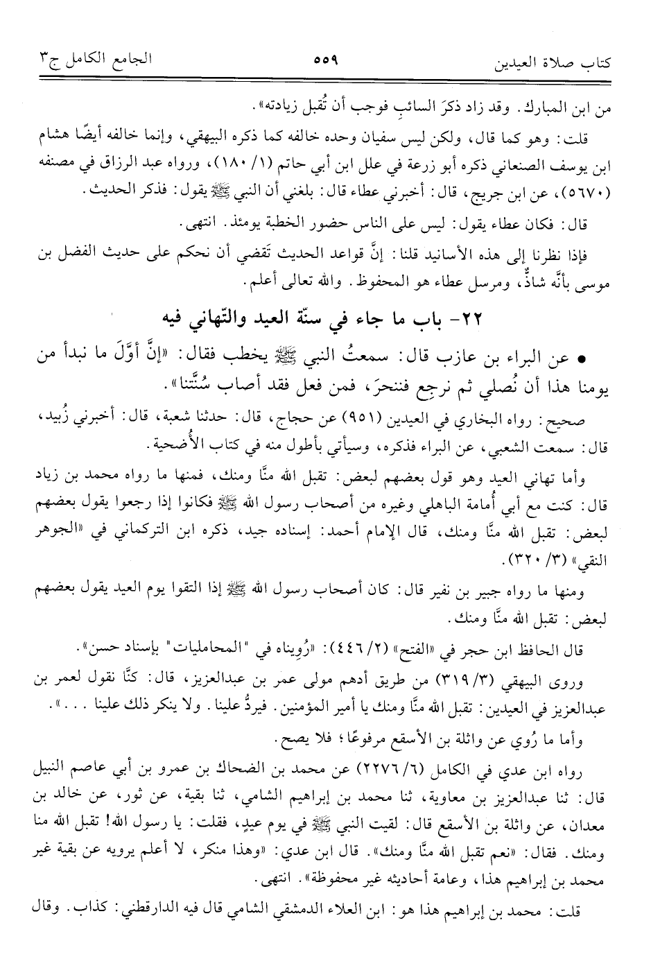 ٢٢ - باب ما جاء في سنّة العيد والتّهاني فيه